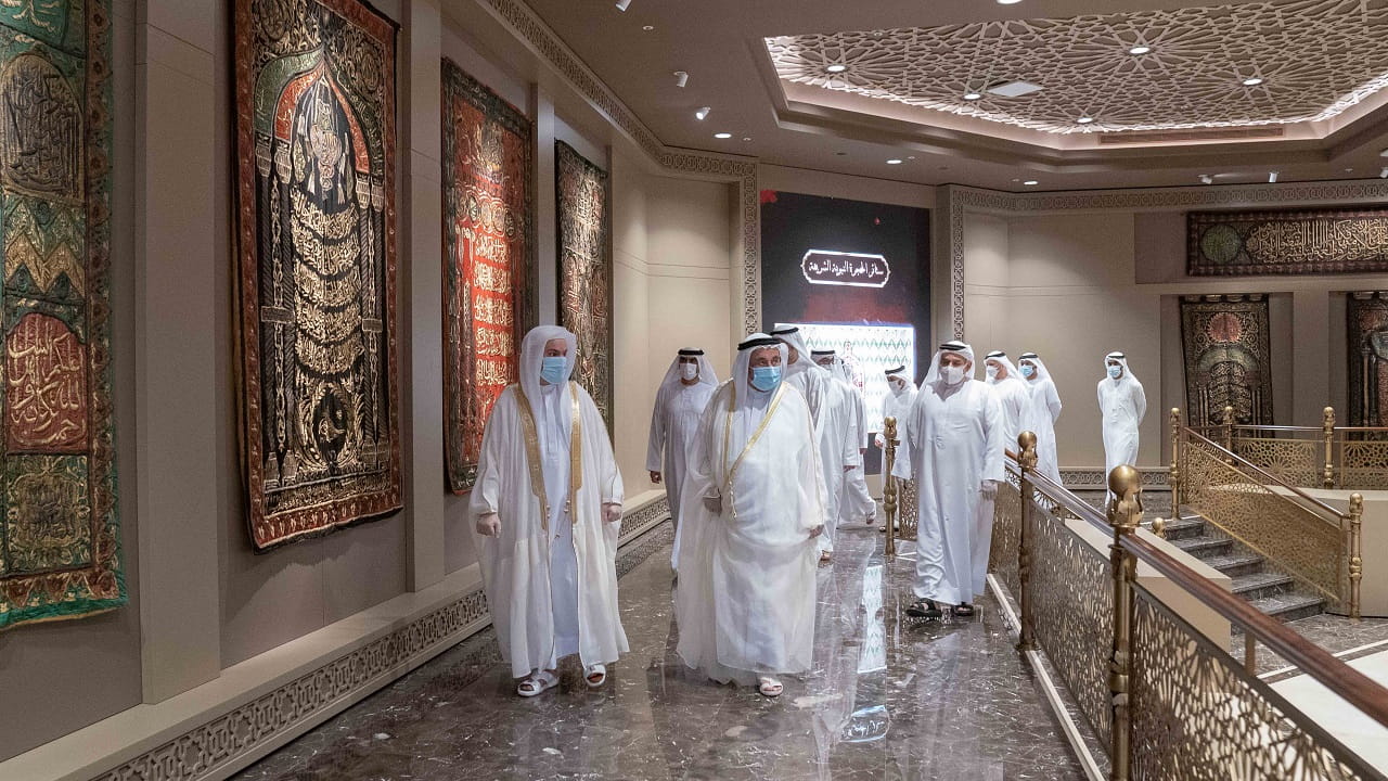 وأكمل صاحب السمو حاكم الشارقة زيارته بتفقد متحف كسوة الكعبة وستائر الحجرة النبوية، ويضم 18 كسوة، يرجع أقدمها إلى القرن العاشر الهجري (970ه)، ويبلغ طولها (5.75)م، وعرضها (2.75)م، ويتوسط المتحف محاكاة لباب الكعبة وعليه قطعة أصلية من كسوة باب الكعبة.