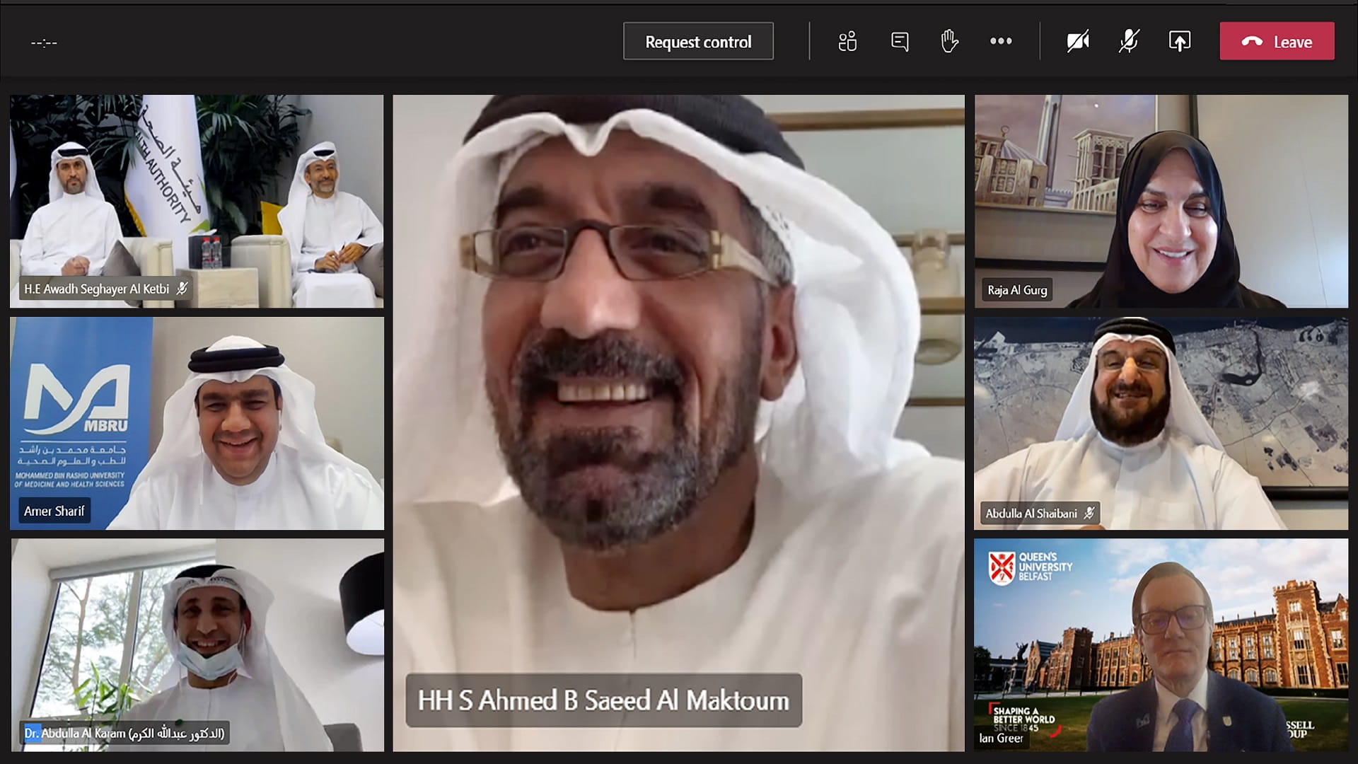 عقد مجلس أمناء جامعة محمد بن راشد للطب والعلوم الصحية اجتماعه الثاني للسنة الأكاديمية 2020-2021 افتراضياً برئاسة سمو الشيخ أحمد بن سعيد آل مكتوم رئيس الجامعة رئيس مجلس الأمناء وحضور أعضاء المجلس بهدف مناقشة آخر المستجدات والتطورات ضمن برامج الجامعة الأكاديمية والبحثية وتوجهاتها الاستراتيجية المتمركزة حول محاور التعليم والأبحاث والاستدامة والحوكمة والمشاركة المجتمعية.