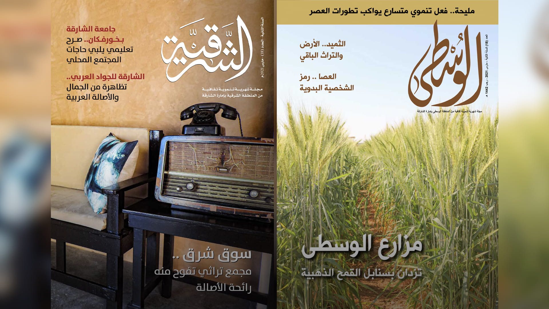 أصدرت دائرة الثقافة بالشارقة العدد 18 من كل من مجلة الوسطى ومجلة الشرقية، عدد مارس، وتضمن العددان تنوعاً ثرياً في المواضيع، تراوح بين رصد الأخبار التنموية والثقافية، وتقارير حول بعض المشاريع التنموية التي تنفذها حكومة الشارقة في المنطقتين، وحوارات مع شخصيات متنوعة الاهتمامات والحضور من المنطقتين، والتوثيق لتاريخ وتراث المنطقتين ولمعالمهما التاريخية والسياحية.