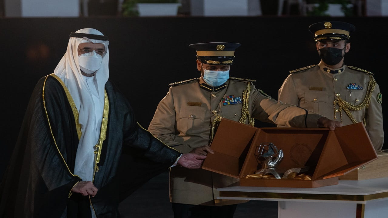 بعدها تسلم سمو رئيس مجلس أكاديمية العلوم الشرطية درعاً تذكارية مقدم من إدارة الأكاديمية تقديراً لدعمه وتشريفه ويرمز الدرع إلى دعامتين مهمتين تمثل الأولى العلم وهو الركيزة الأساسية للتنمية والتطور، أما الثانية فتمثل الأمن من خلال وجود أيد أمينة تدعم هذا التقدم، وتعمل على حمايته.