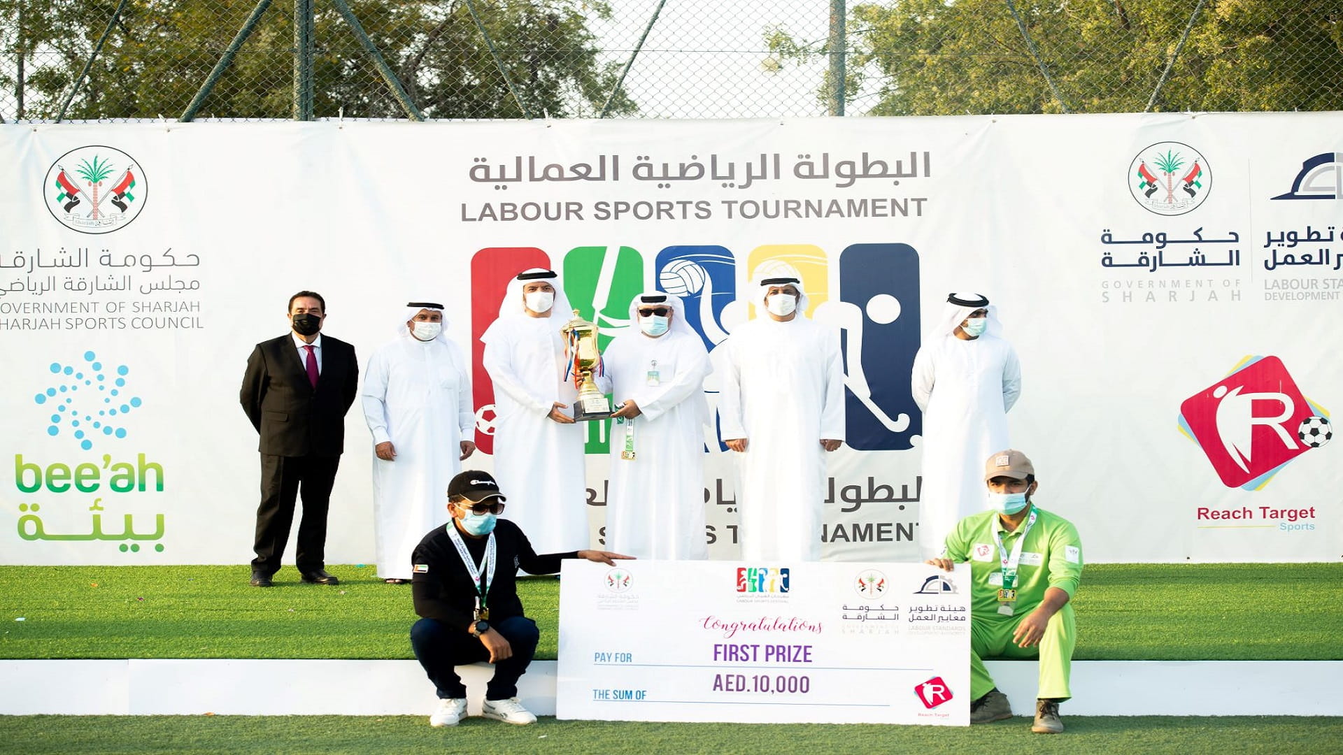 وتوج سالم القصير رئيس الهيئة، الفرق الفائزة بالمراكز الثلاثة الأولى بالكؤوس والميداليات، حيث تُوج فريق فاست بطل كرة القدم بكأس البطولة والميدالية الذهبية بعد فوزه في المباراة النهائية بهدف نظيف على فريق أصباغ ناشيونال الذي حل وصيفاً ونال الفضية، وفريق اسكينوفا صاحب المركز الثالث، كما تم تكريم أفضل لاعب في البطولة مجيد حميد من فريق أصباغ ناشيونال، وهداف البطولة حازم خالد من فريق أدنوك، وأحسن حارس أحمد الدسوقي "فاست" ، وأفضل إداري وائل عبد الشكور "فاست "، وأفضل مدرب سعيد سلامة "أدنوك"، والفريق المثالي جمعية الشارقة التعاونية .