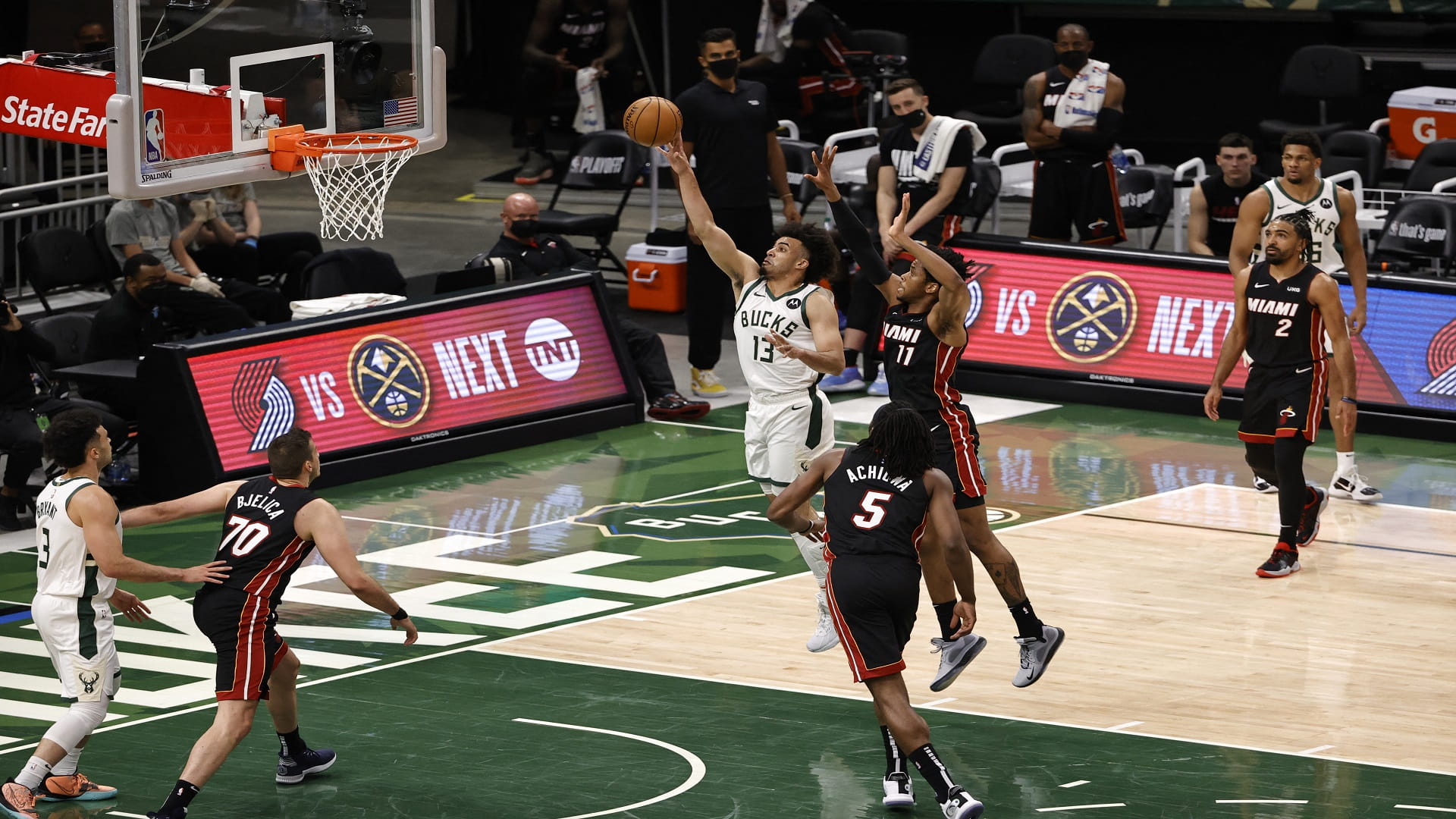 وسجل النجم جيانيس أنتيتوكونمبو 31 نقطة و13 متابعة و6 تمريرات حاسمة، وأضاف برين فوربس 22 نقطة لفريق ميلواكي بكس، الذي كان قد خسر أمام ميامي هيت في ثاني الأدوار الإقصائية بالموسم الماضي.