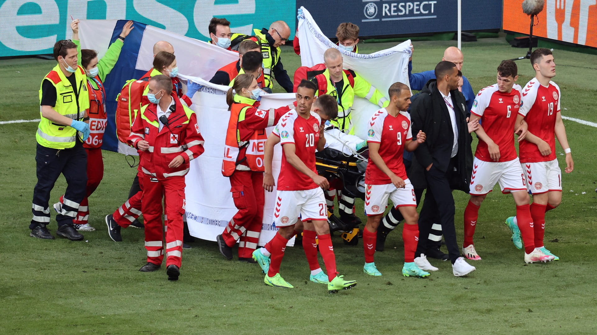 وكان إريكسن قد سقط بشكل مفاجئ على أرضية الملعب، خلال مباراة منتخب بلاده أمام نظيره الفنلندي، أمس الأول السبت، في كوبنهاجن، ضمن منافسات كأس الأمم الأوروبية "يورو 2020"، ويعتقد الأطباء أنه تعرض لنوبة قلبية، وقد جرى إنعاشه على أرض الملعب قبل نقله إلى المستشفى.