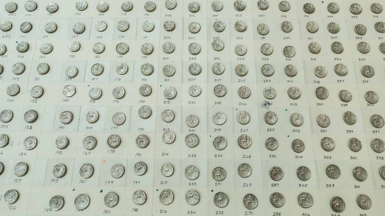 وبحسب الدراسة الأولية تبين أن العدد الإجمالي للعملات المكتشفة 409 عملة من فئة الدراخما الرباعية التي يتراوح وزنها ما بين 16جرام إلى 17 جرام مكونة جميعها من مادة الفضة، وتمثل جميع العملات المكتشفة في الجرة عملات نادرة وبعضها لم يتم تسجيلها في السابق حيث أنها تعتبر فئات جديدة من عملات مليحة.