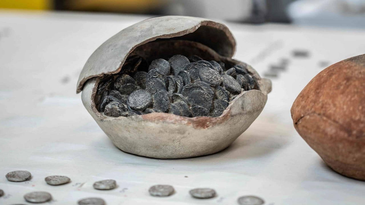 اطلع صاحب السمو الشيخ الدكتور سلطان بن محمد القاسمي عضو المجلس الأعلى حاكم الشارقة، صباح اليوم الثلاثاء، خلال زيارته مبنى هيئة الشارقة للآثار على أحدث الاكتشافات الأثرية المتمثلة في كنز أثري مكون من العملات التي وجدت في زمزمية فخارية بمنطقة مليحة.