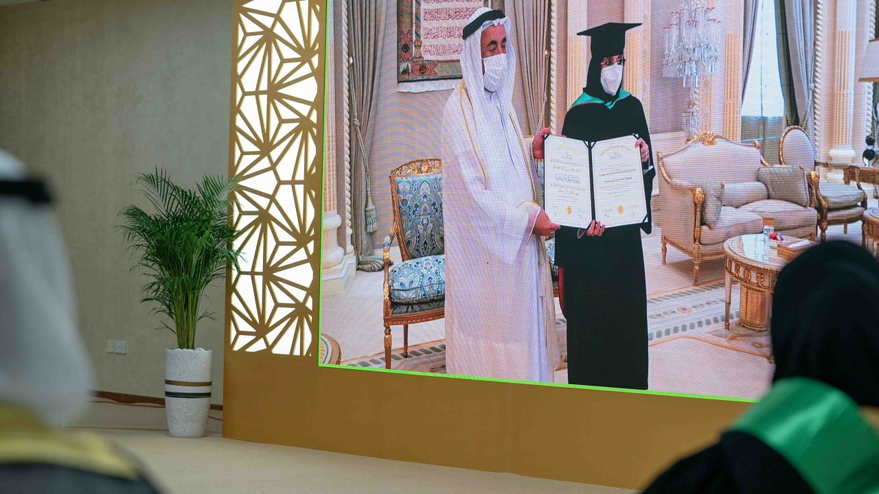 وشاهد الحضور، فيلماً تسجيلياً لتسليم صاحب السمو حاكم الشارقة، سمو الشيخة جواهر بنت محمد القاسمي شهادة الدكتوراه الفخرية، والتي منحت لسموها تقديراً لإنجازاتها الإنسانية والاجتماعية المتميّزة، محلياً وإقليمياً وعالمياً، ومبادراتها الرائدة والنوعية، ومنها تأسيسها نادي سيدات الشارقة، والمجلس الأعلى لشؤون الأسرة الذي يشرف على شبكة من المؤسسات والجمعيات المهمة التي تخدم القطاع الاجتماعي في إمارة الشارقة، ويحظى برعاية ومتابعة كريمة من سموها.