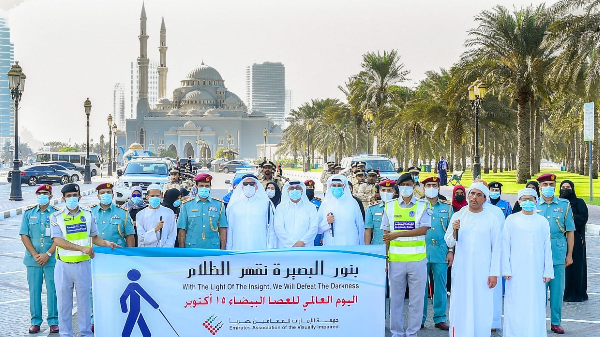 تزامناً مع احتفالات دولة الإمارات العربية المتحدة باليوم العالمي للعصا البيضاء، الذي يصادف 15 أكتوبر من كل عام، شاركت القيادة العامة لشرطة الشارقة في مسيرة "العصا البيضاء"، التي نظمتها جمعية الإمارات للمعاقين بصرياً على بحيرة خالد.