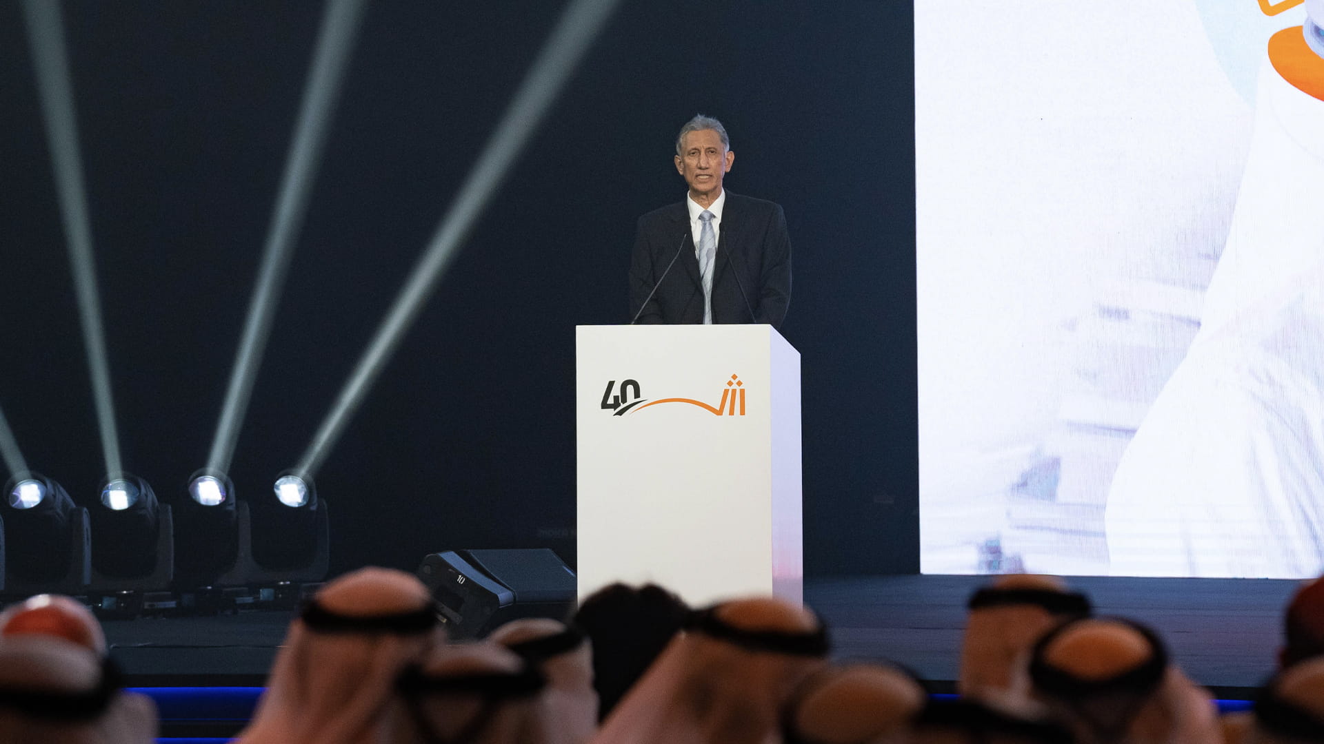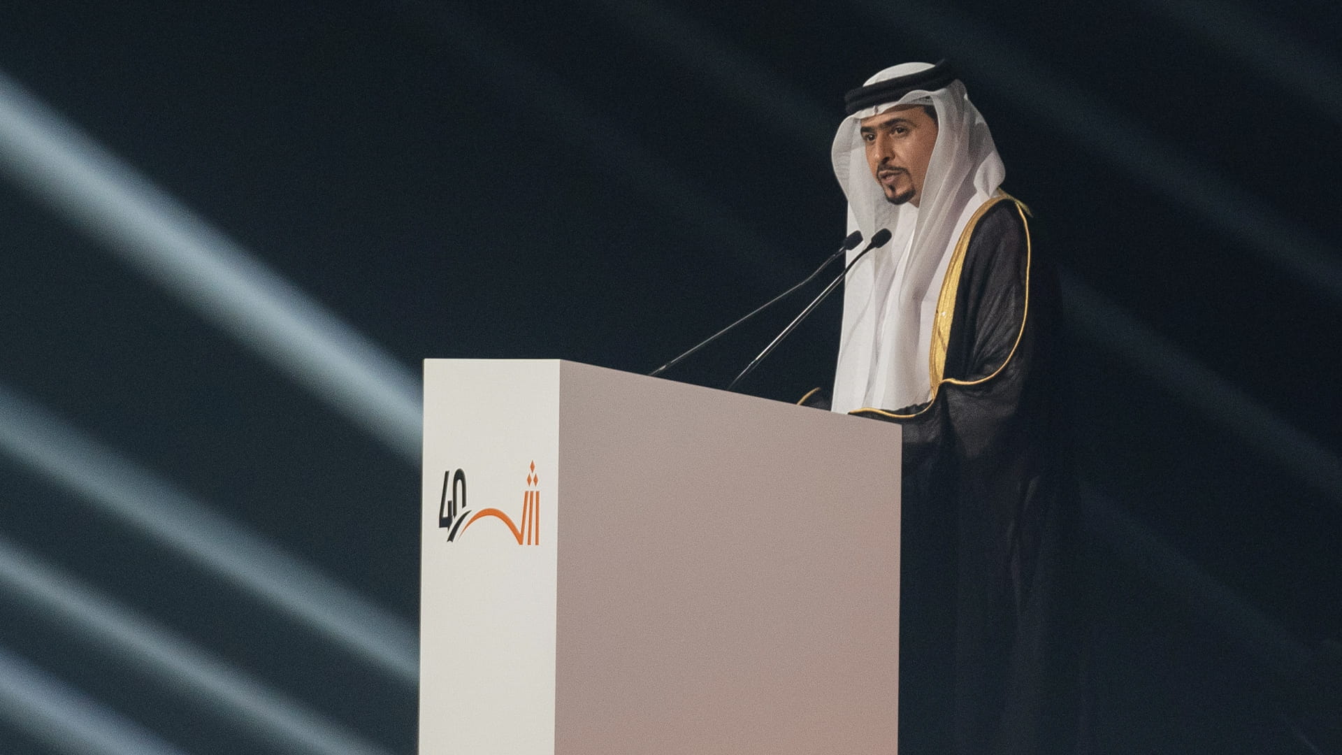 وتابع سعادته، اليوم وبعد أربعين عاماً يحق للشارقة والعرب أن يفخروا بخنجركم الذهبي الذي رهنتموه يا صاحب السمو، من أجل كتاب والذي حتماً كسبتم به الرهان يا صاحب السمو، ويسعدنا أن نعلن اليوم بأن معرض الشارقة الدولي للكتاب تصدر هذا العام معارض العالم كافة ليصبح أكبر معرض كتاب في العالم من حيث بيع وشراء حقوق النشر.