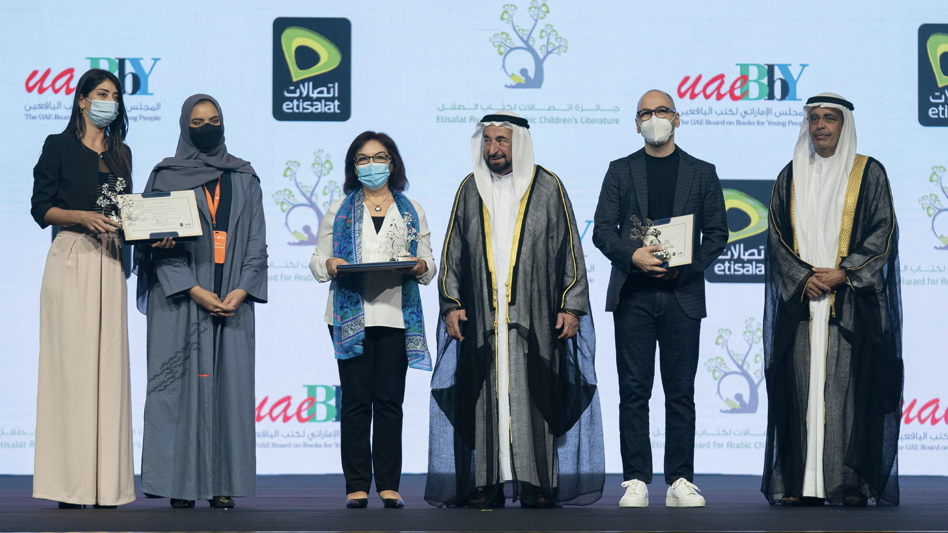 كما تفضل صاحب السمو حاكم الشارقة، بتسليم جوائز الدورة الـ13 من جائزة اتصالات لكتاب الطفل، البالغ مجموعها 1.2 مليون درهم، للفائزين بها هذا العام، حيث فاز بالجائزة عن فئة الطفولة المبكرة كتاب "ألف باء... ياء" للكاتبة سمر محفوظ براج والرسام سنان حلاق، الصادر عن "دار الساقي - الساقي للأطفال والشبان" في لبنان؛ وعن فئة الكتاب المصوّر، فاز كتاب "البطل الخارق" للكاتبة نسيبة العزيبي والمصور حسان مناصرة، الصادر عن دار "أشجار للنشر والتوزيع" في دولة الإمارات.