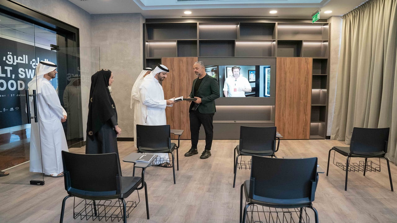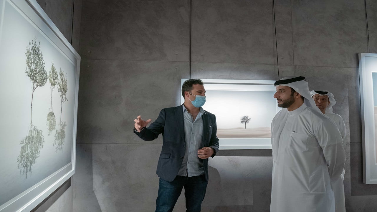 كما استمع سموه خلال جولته في معرض الفنان البريطاني أنتوني لامب، إلى الرؤية التي ينطلق منها في أعماله التي يشارك بها في المعرض بعنوان "ملاذات"، والتي تعكس علاقته بالحياة من حوله، إلى جانب محطات مختلفة من رحلة الفنان مع الكاميرا كمصور محترف له أسلوبه الخاص في هذا الفن.