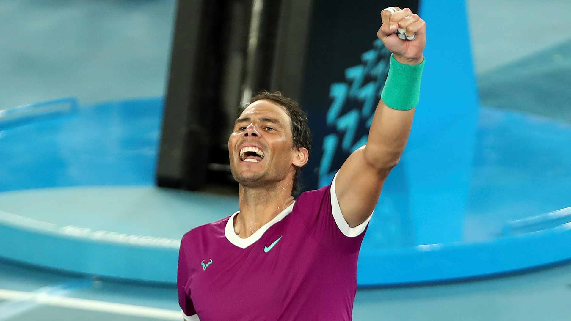 ويلتقي نادال البالغ من العمر 35 عاماً والساعي إلى اللقب الـ 21 في الغراند سلام في مسيرته الاحترافية، وتحطيم الرقم القياسي الذي يتقاسمه مع السويسري روجيه فيدرر والصربي نوفاك ديوكوفيتش، في المباراة النهائية الأحد مع الروسي دانييل مدفيديف الثاني أو اليوناني ستيفانوس تسيتسيباس الرابع اللذين يلتقيان لاحقاً.