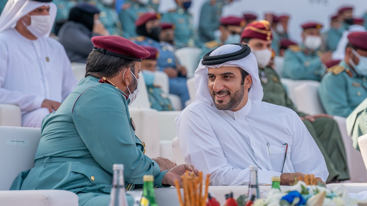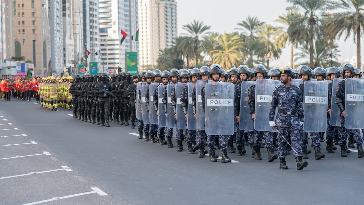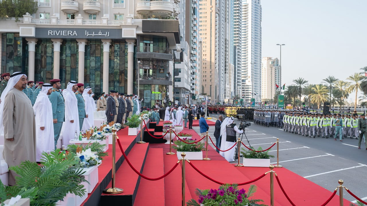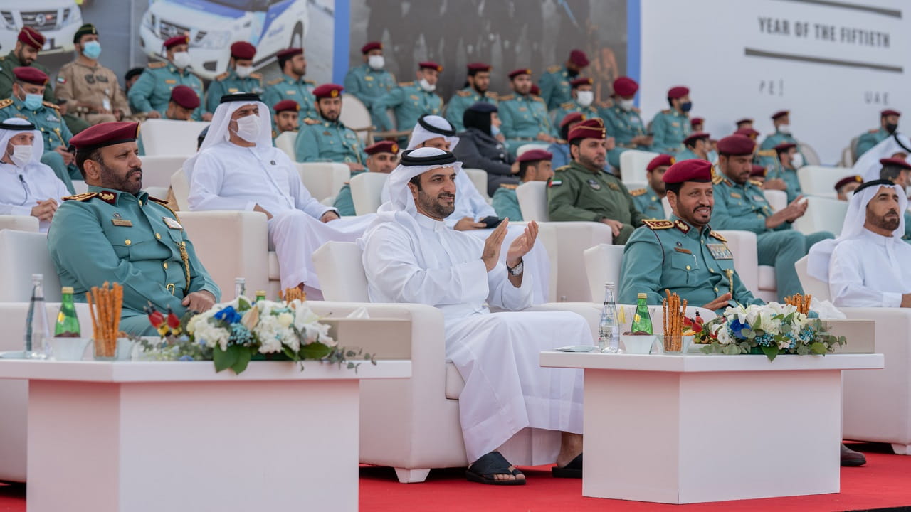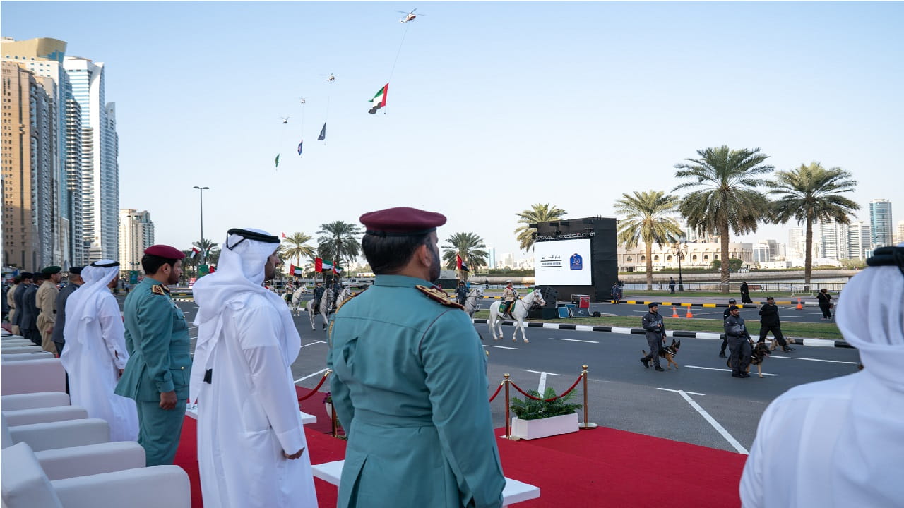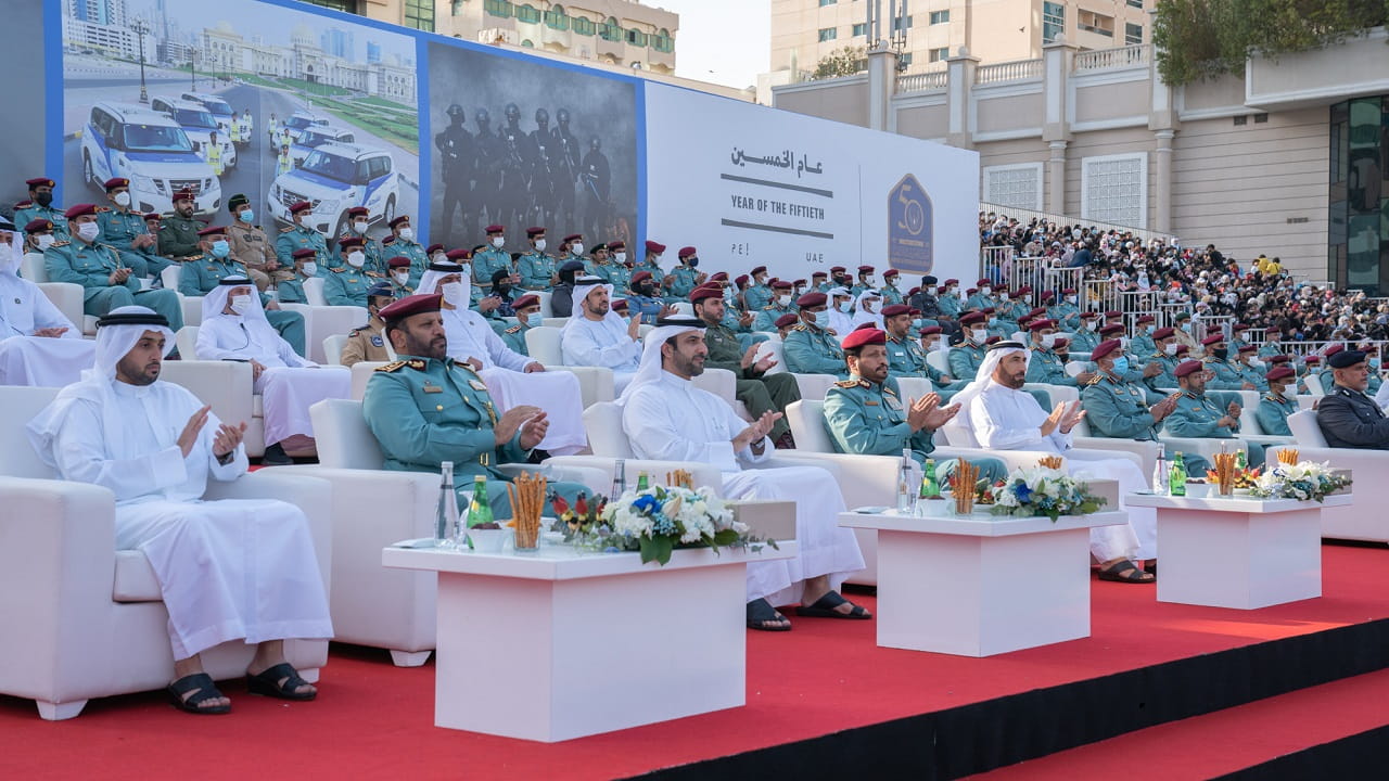 وكان الحفل، قد بدأ بعزف السلام الوطني ليلقي بعدها سعادة اللواء سيف الزري الشامسي قائد عام شرطة الشارقة كلمةً بهذه المناسبة، قال فيها: نلتقي اليوم لنروي جزءاً مهماً من مسيرة الأمن والأمان والريادة والتميز والعطاء، مسيرة بنى مؤسسها الشيخ زايد بن سلطان آل نهيان، طيب الله ثراه، وإخوانه الحكام المؤسسين، وسار على نهجه سيدي صاحب السمو الشيخ خليفة بن زايد آل نهيان رئيس الدولة، حفظه الله، وإخوانه حكام الإمارات أصحاب السمو أعضاء المجلس الأعلى الاتحاد، مسيرة تحققت من خلالها الإنجازات الواحدة تلو الأخرى، حتى أصبحت دولة الإمارات العربية المتحدة نموذجاً متفرداً ومتقدماً في كافة المجالات.