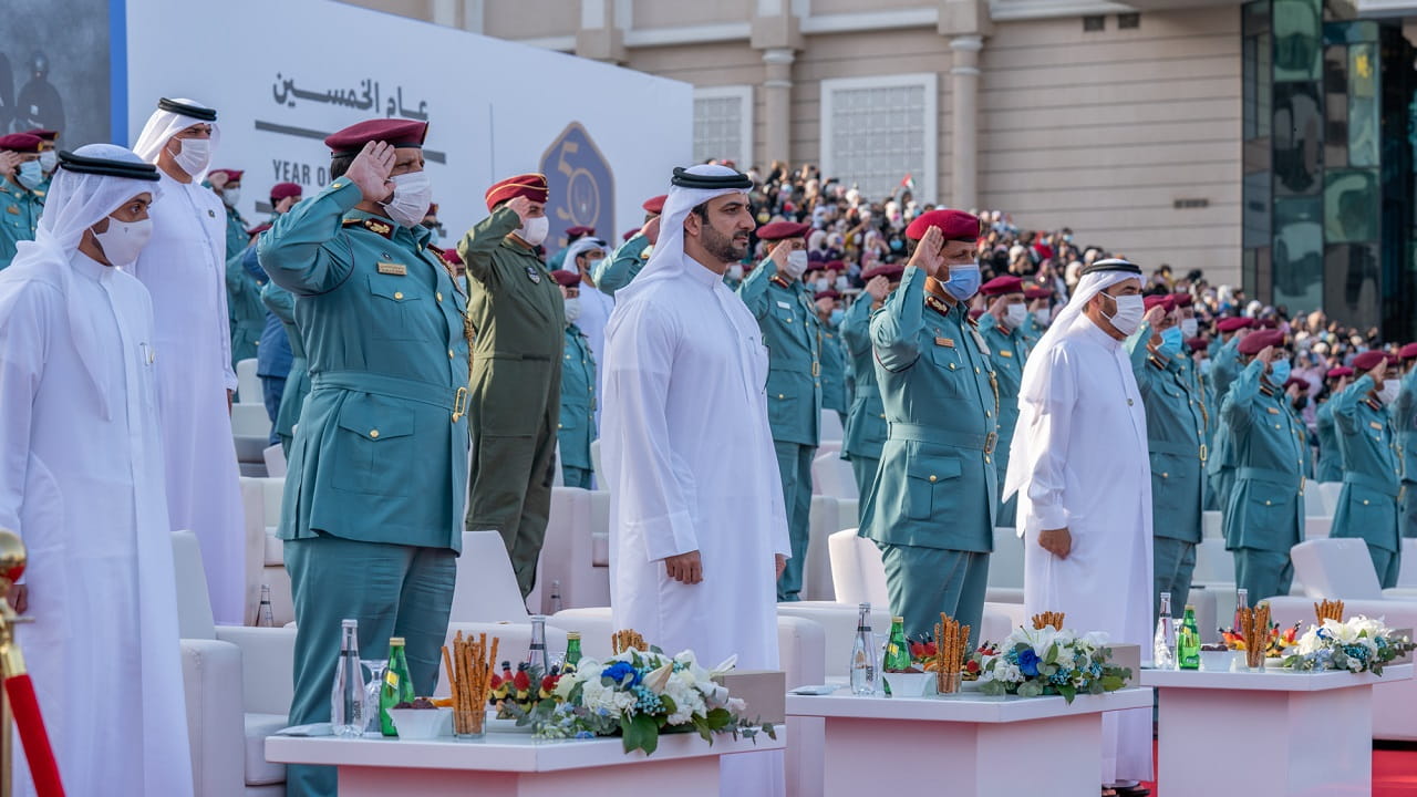 وأشاد سمو نائب حاكم الشارقة، بجهود كافة العاملين في وزارة الداخلية على مدار خمسين عاماً، ساهموا خلالها بتطوير المنظومة الأمنية ورفع مستوى الوعي والثقافة لدى المواطنين والقاطنين على أرض الإمارات، وحققوا نقلة نوعية في مستوى خدمات الوزارة، حتى أصبحت مثالاً يحتذى به في العمل الحكومي الشرطي.