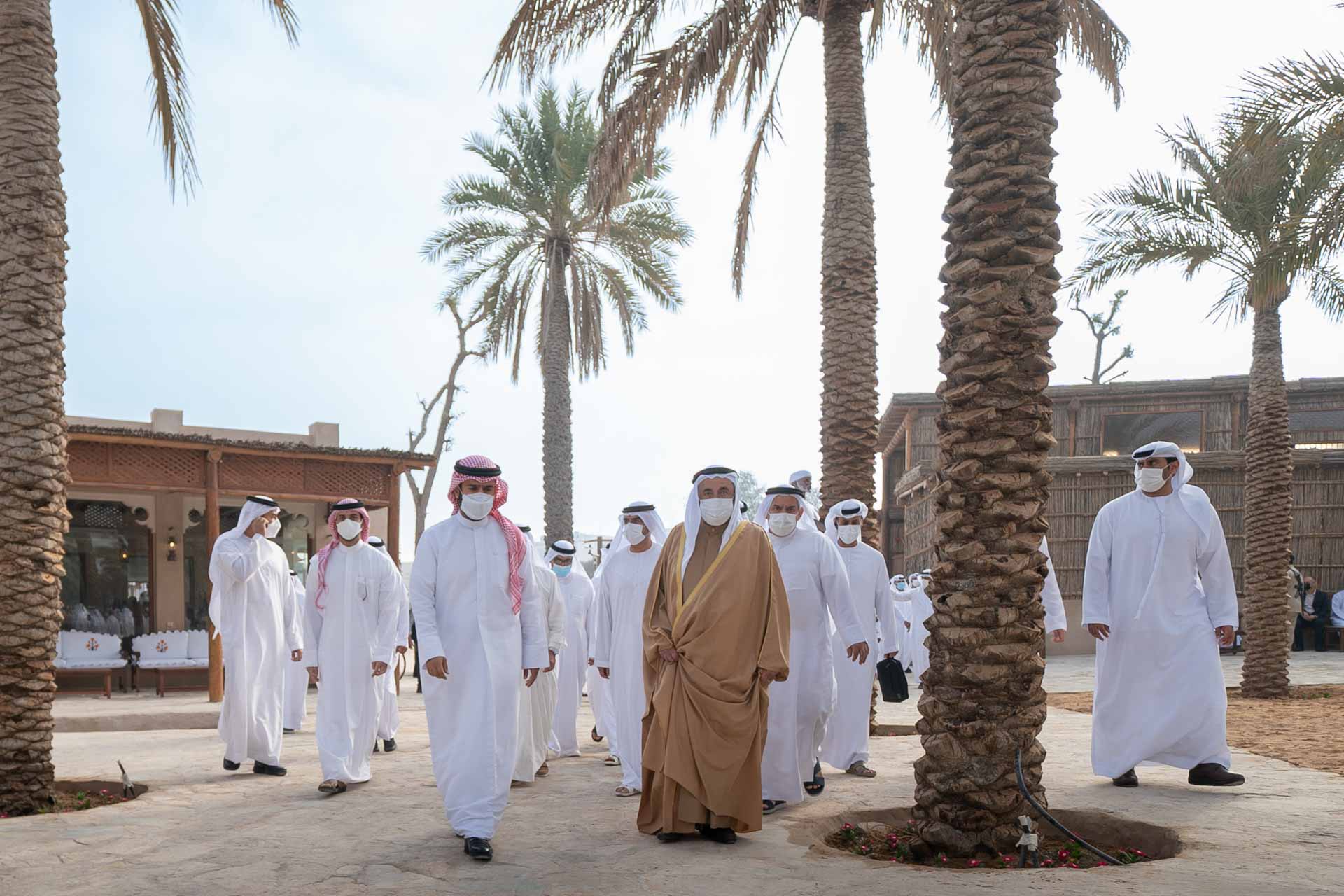 ثم انتقل صاحب السمو حاكم الشارقة إلى افتتاح السوق الواقع خلف الحصن، والذي تم بناءه بالكامل من الدعون والأخشاب بتصميم متطور يراعي معايير السلامة والأمان دون تغيير النمط المعماري التراثي للبناء بالدعون.