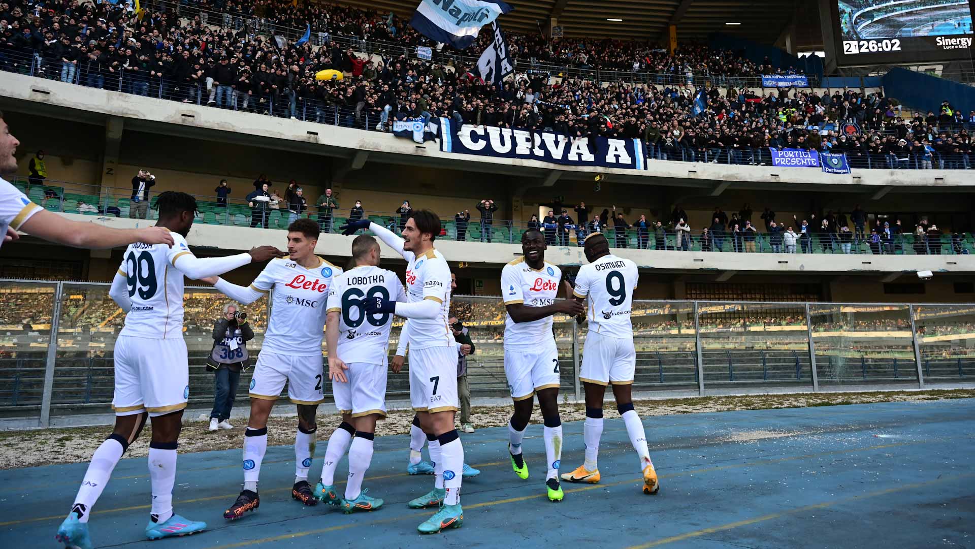قاد فيكتور أوسيمين فريق نابولي للفوز على مضيفه هيلاس فيرونا 2 / 1 خلال المباراة التي جمعتهما، في الجولة الـ 29 من الدوري الإيطالي لكرة القدم، والتي شهدت أيضاً فوز فيورنتينا على بولونيا 1 / صفر، وتعادل أودينيزي مع روما 1 / 1 وأتالانتا مع جنوه سلبيا.