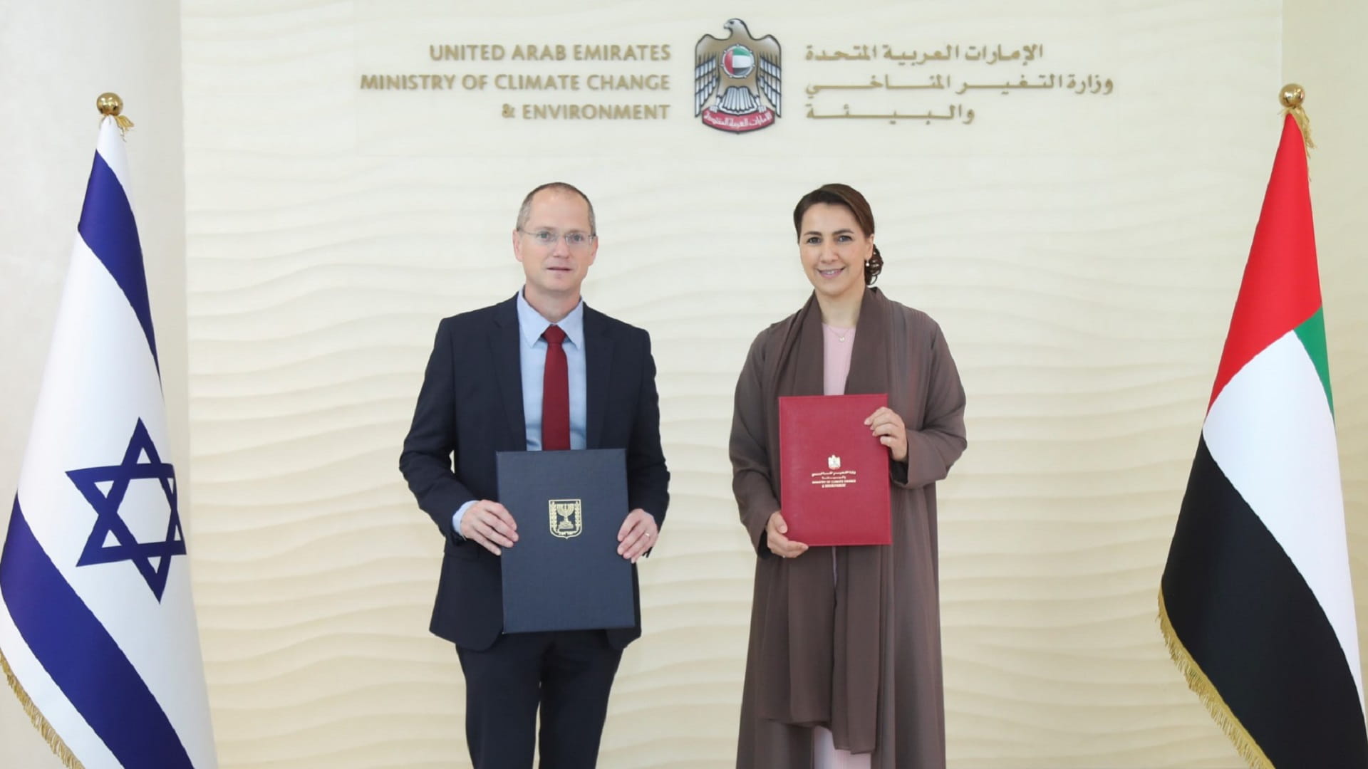 أبرمت وزارة التغير المناخي والبيئة مذكرة تفاهم مع وزارة الزراعة والتنمية الريفية في إسرائيل للتعاون بالمجال الزراعي. وقع المذكرة معالي مريم بنت محمد سعيد حارب المهيري وزيرة التغير المناخي والبيئة ومعالي عوديد فورير، وزير الزراعة والتنمية الريفية في إسرائيل.