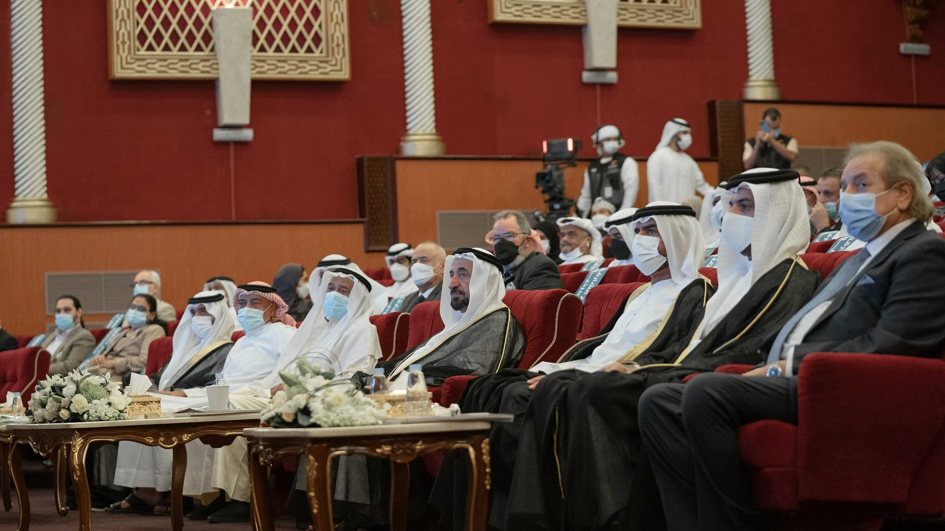 وتابع صاحب السمو حاكم الشارقة، والحضور عرضين مرئيين حكى الأول سيرة الفنان جاسم النبهان الإبداعية، وأعماله المتنوعة في المسرح الكويتي والعربي، وعرض الثاني سيرة الفنان بلال عبد الله، وعطائه الكبير في المسرح الإماراتي والخليجي كممثل ومخرج ومؤلف.