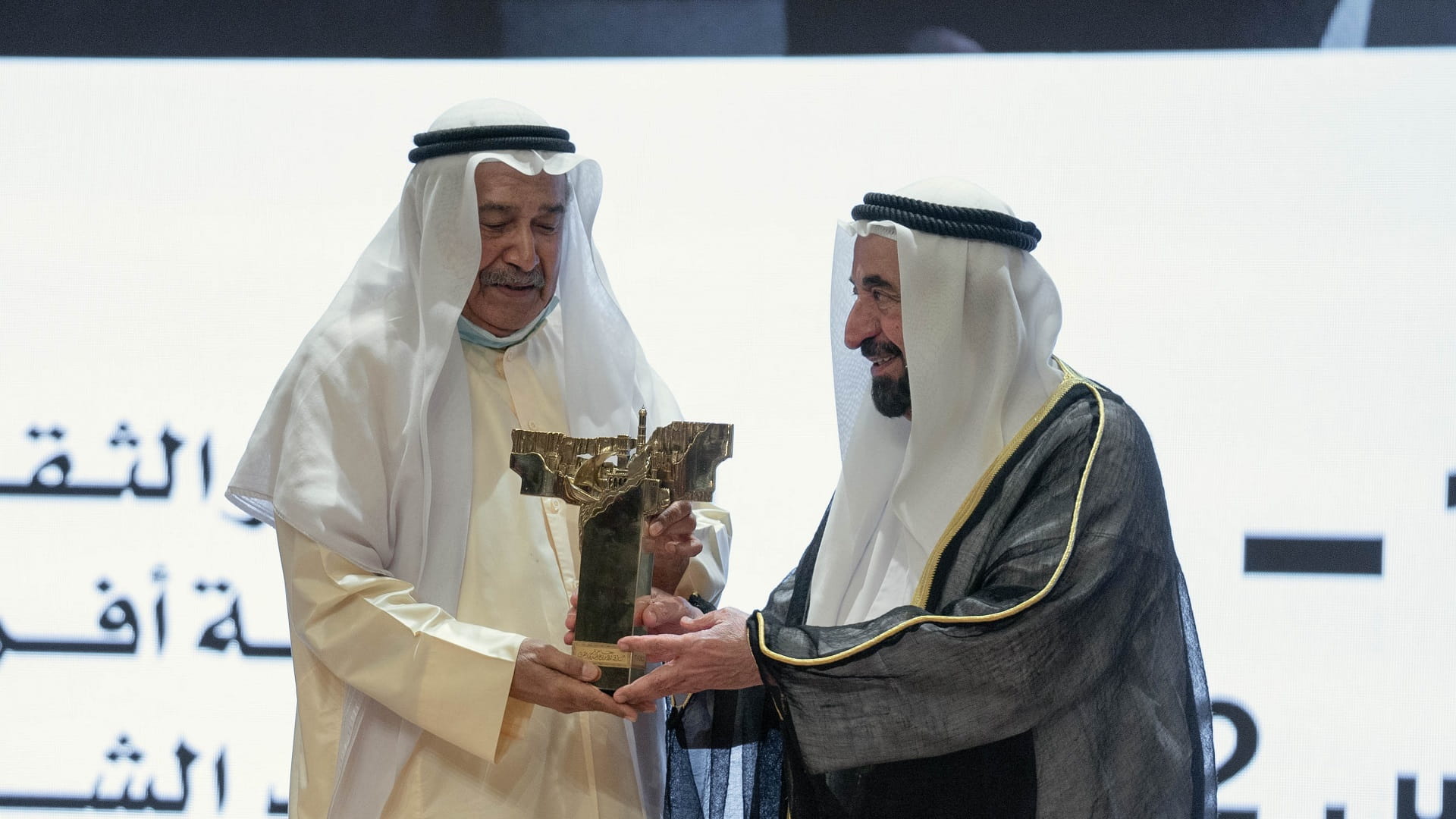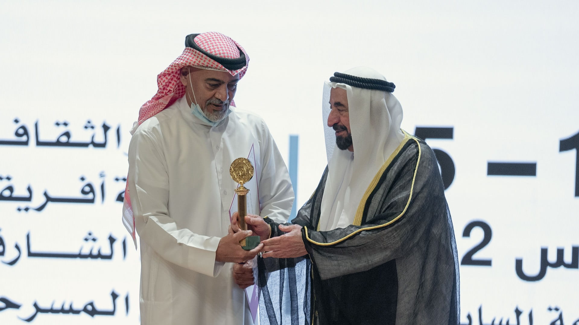 وتفضل صاحب السمو حاكم الشارقة، بتكريم الفائز بجائزة الشارقة للإبداع المسرحي العربي في دورتها "15"، والتي نالها الفنان الكويتي جاسم النبهان، كما كرم سموه الفنان الإماراتي بلال عبد الله بجائزة الشخصية المحلية المكرمة.