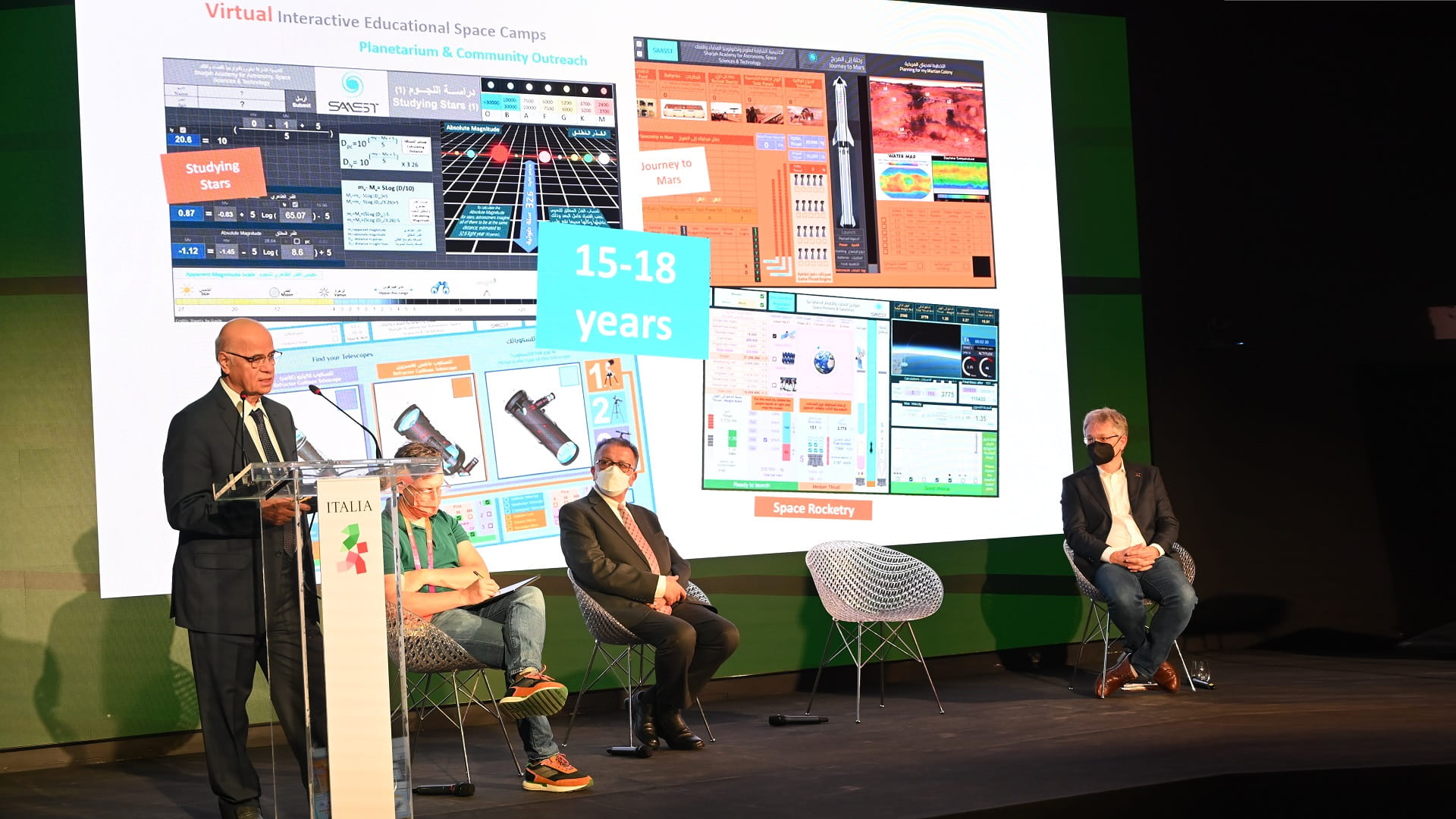 بحثت جامعة الشارقة وأكاديمية الشارقة لعلوم وتكنولوجيا الفضاء والفلك "SAASST"، خلال مشاركتهما بالمائدة المستديرة بالجناح الإيطالي في إكسبو دبي 2020، تعليم وتعلم العلوم الفلكية في المنطقة، من خلال الاتحاد الفلكي الدولي.