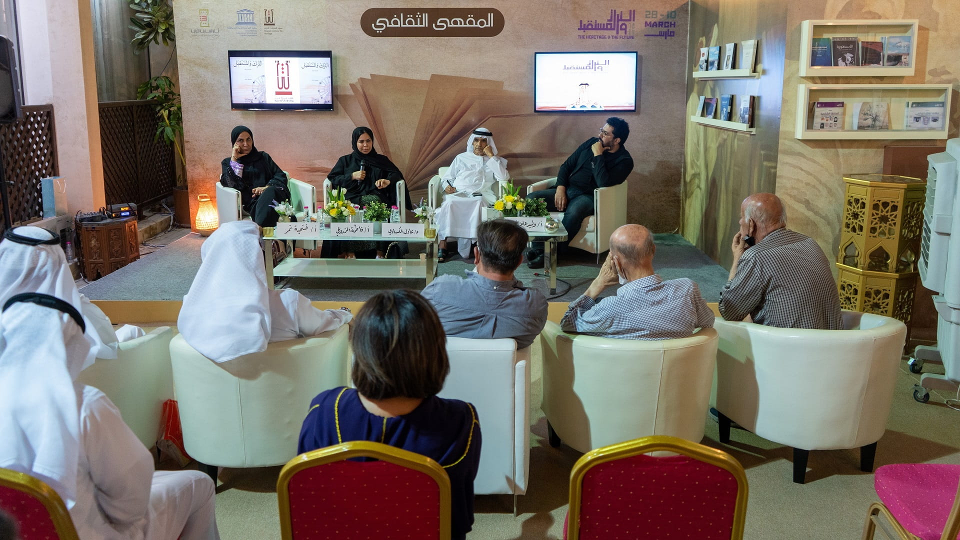 ففي آخر سلسلة جلسات المقهى الثقافي، نظمت جلسة ثرية لمناقشة تجليات التراث الإماراتي في تجربة الكتابة السردية الإماراتية، والإجابة على سؤال حول مدى وجود أفق واضح لتوظيف التراث واستلهامه في هذه التجربة.