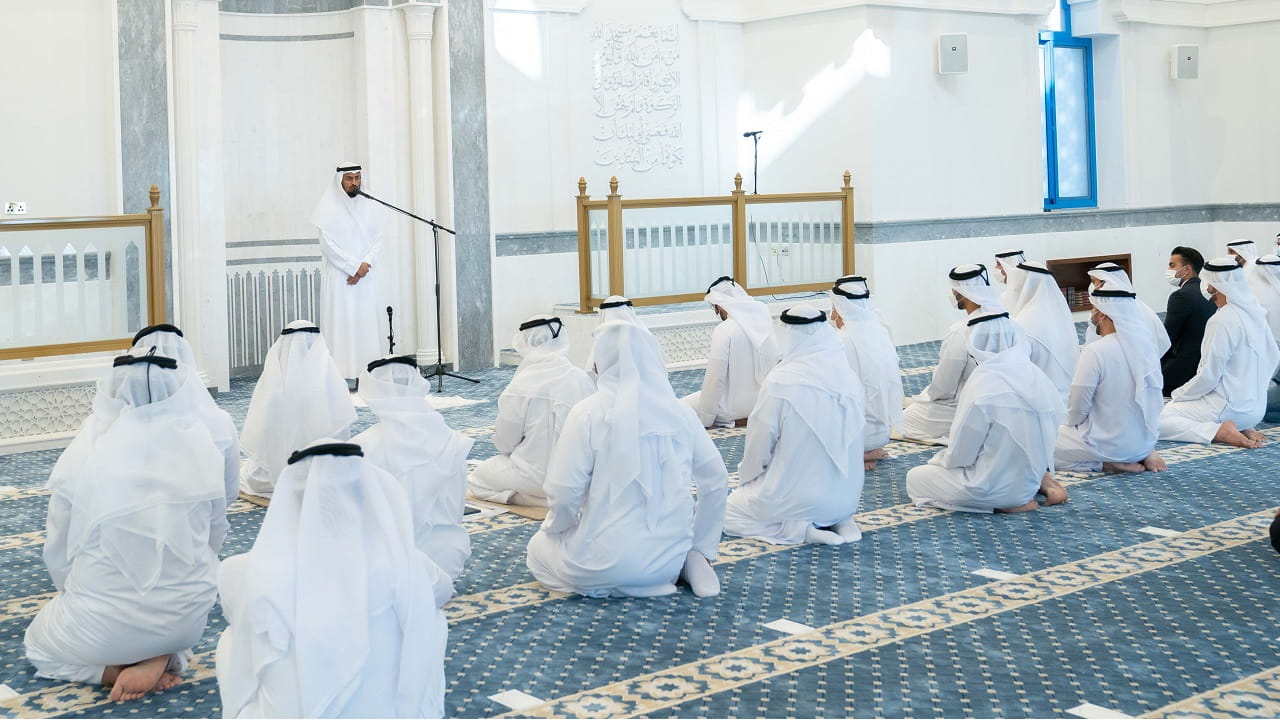 واستمع سموه، إلى موعظة دينية تناولت العبادات وأهمية الحفاظ عليها، والحرص على بناء المساجد، لما لها من أهمية كبرى في الإسلام للتقرب إلى الله من خلال أداء الصلوات وقراءة القرآن الكريم والتعرف على كافة أمور حياة المسلم عبر الدروس الدينية والمحاضرات التي تنظمها دائرة الشؤون الإسلامية.