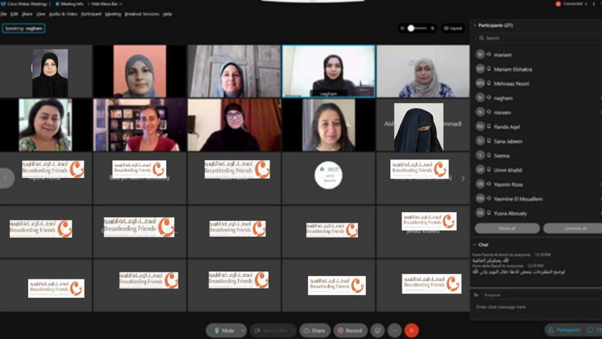 أطلقت جمعية أصدقاء الرضاعة الطبيعية إحدى الجمعيات الداعمة للصحة التابعة لإدارة التثقيف الصحي في المجلس الأعلى لشؤون الأسرة في الشارقة، الدورة السادسة عشرة، من برنامج مرشدات الرضاعة الطبيعية، بمشاركة 24 متدربة من الأمهات العاملات وربات المنازل والمهتمات بالرضاعة الطبيعية من مختلف الجنسيات، من داخل وخارج دولة الإمارات العربية المتحدة، واستمر لمدة 12 يوماً، حيث بث "عن بعد" عبر خاصية الاتصال المرئي عن طريق برنامج ويبكس ميتنغ.