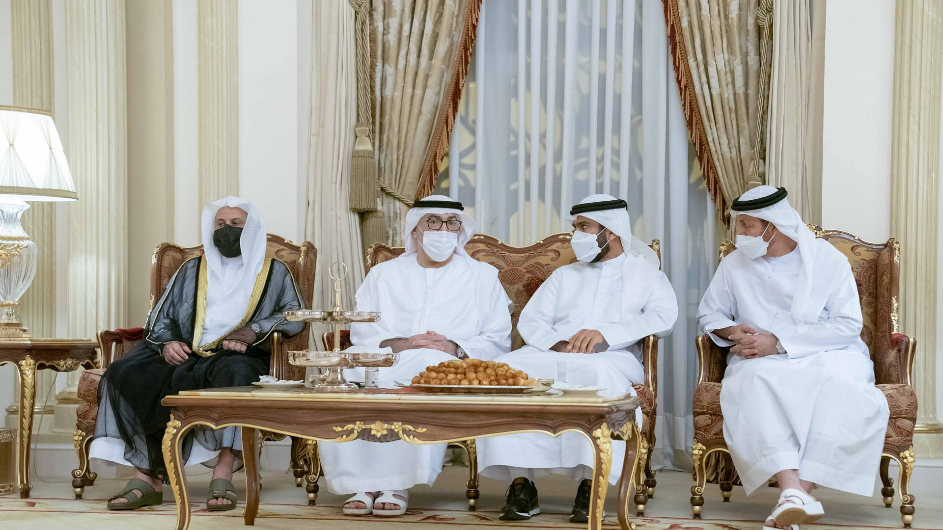 حضر الاستقبال كل من الشيخ عبد الله بن محمد آل ثاني المستشار بمكتب سمو الحاكم، والشيخ عصام بن صقر القاسمي المستشار بمكتب سمو الحاكم، والشيخ محمد بن سعود القاسمي رئيس دائرة المالية المركزية، والشيخ خالد بن عبد الله القاسمي رئيس هيئة الشارقة للموانئ والجمارك والمناطق الحرة، والشيخ خالد بن عصام القاسمي رئيس دائرة الطيران المدني، والشيخ سالم بن عبد الرحمن القاسمي، رئيس مكتب سمو الحاكم، والشيخ محمد بن حميد القاسمي رئيس دائرة الإحصاء والتنمية المجتمعية، والشيخ ماجد بن سلطان القاسمي مدير دائرة شؤون الضواحي والقرى، والشيخ سلطان بن عبد الله آل ثاني مدير دائرة الطيران المدني، ومعالي عبد الرحمن بن محمد العويس وزير الصحة ووقاية المجتمع، وسعادة راشد أحمد بن الشيخ رئيس الديوان الأميري، ورؤساء الدوائر والمؤسسات المحلية.