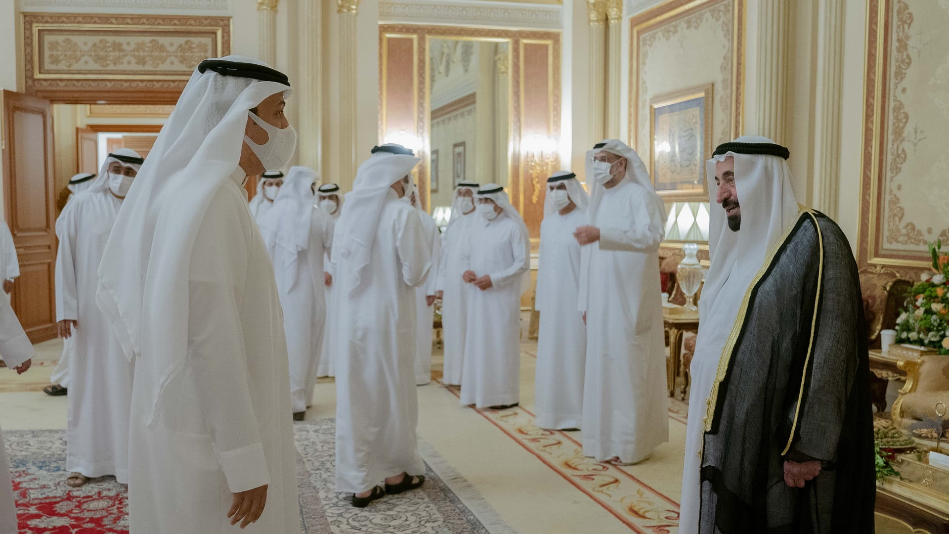استقبل صاحب السمو الشيخ الدكتور سلطان بن محمد القاسمي، عضو المجلس الأعلى حاكم الشارقة، بحضور سمو الشيخ سلطان بن محمد بن سلطان القاسمي ولي العهد نائب حاكم الشارقة، وسمو الشيخ عبد الله بن سالم بن سلطان القاسمي نائب حاكم الشارقة، وسمو الشيخ سلطان بن أحمد بن سلطان القاسمي نائب حاكم الشارقة، مساء الأحد، في قصر البديع العامر، جموع المهنئين بحلول شهر رمضان المبارك، من الشيوخ والمسؤولين وأعيان البلاد وأبناء القبائل والمواطنين.