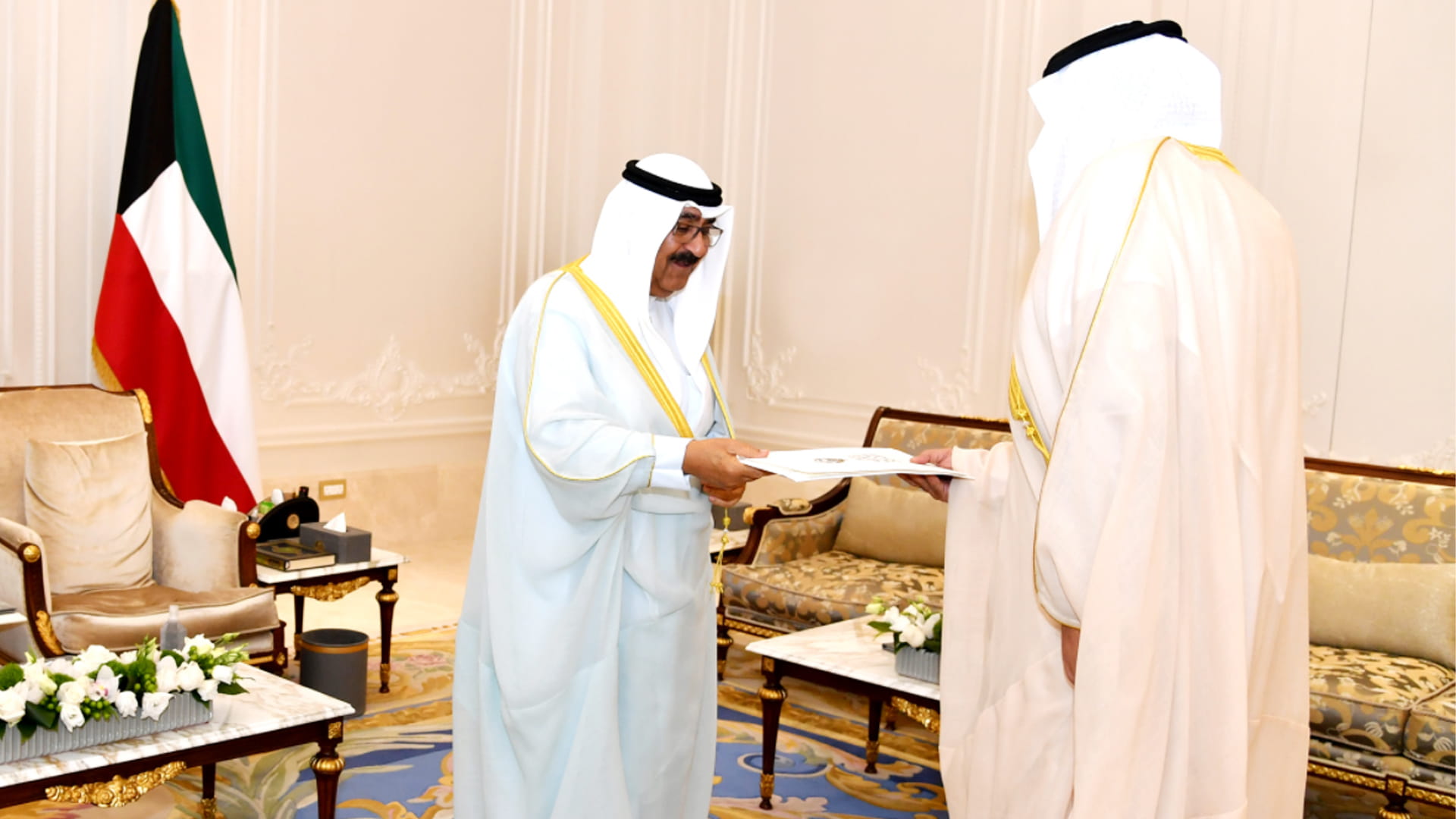تسلّم سمو الشيخ مشعل الأحمد الجابر الصباح ولي العهد بدولة الكويت، اليوم الثلاثاء، من سمو الشيخ صباح خالد الحمد الصباح رئيس مجلس الوزراء، كتاب استقالة الحكومة.