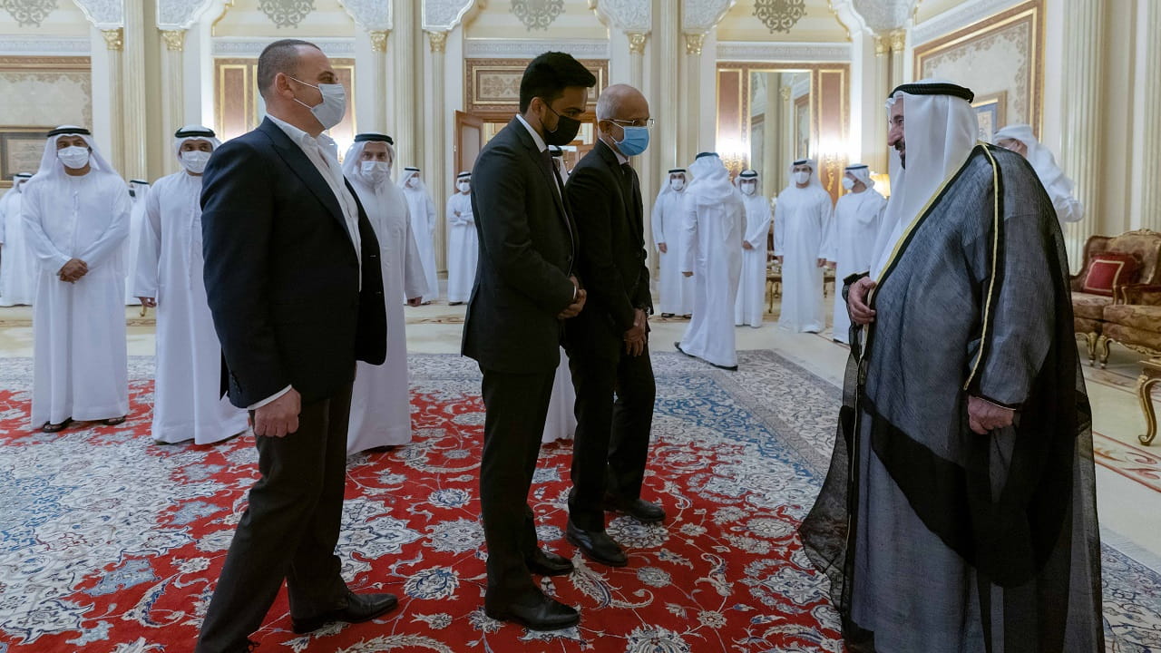 حضر الاستقبال، كل من الشيخ محمد بن سعود القاسمي رئيس دائرة المالية المركزية، والشيخ خالد بن عبد الله القاسمي رئيس هيئة الشارقة للموانئ والجمارك والمناطق الحرة، والشيخ سالم بن عبد الرحمن القاسمي رئيس مكتب سمو الحاكم، والشيخ فاهم بن سلطان القاسمي رئيس دائرة العلاقات الحكومية، والشيخ خالد بن صقر القاسمي رئيس هيئة الوقاية والسلامة، والشيخ محمد بن حميد القاسمي رئيس دائرة الإحصاء والتنمية المجتمعية، وسعادة راشد أحمد بن الشيخ رئيس الديوان الأميري، ورؤساء الدوائر والمؤسسات المحلية ومدراء الدوائر المحلية بالشارقة، وجموع المواطنين.