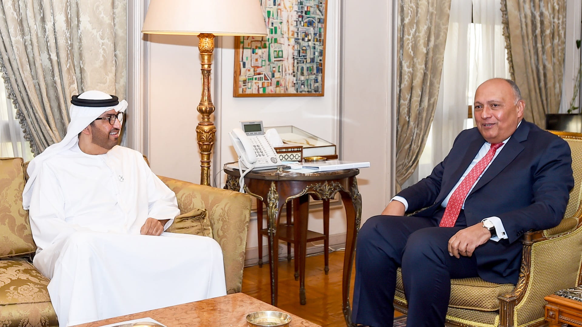 التقى معالي الدكتور سلطان بن أحمد الجابر وزير الصناعة والتكنولوجيا المتقدمة والمبعوث الخاص لدولة الإمارات للتغير المناخي، سامح شكري وزير خارجية جمهورية مصر العربية ورئيس مؤتمر الأطراف " COP27"، حيث نقل معاليه في بداية الاجتماع، تحيات سمو الشيخ عبد الله بن زايد آل نهيان وزير الخارجية والتعاون الدولي، إلى قيادة وحكومة وشعب جمهورية مصر العربية الشقيقة.