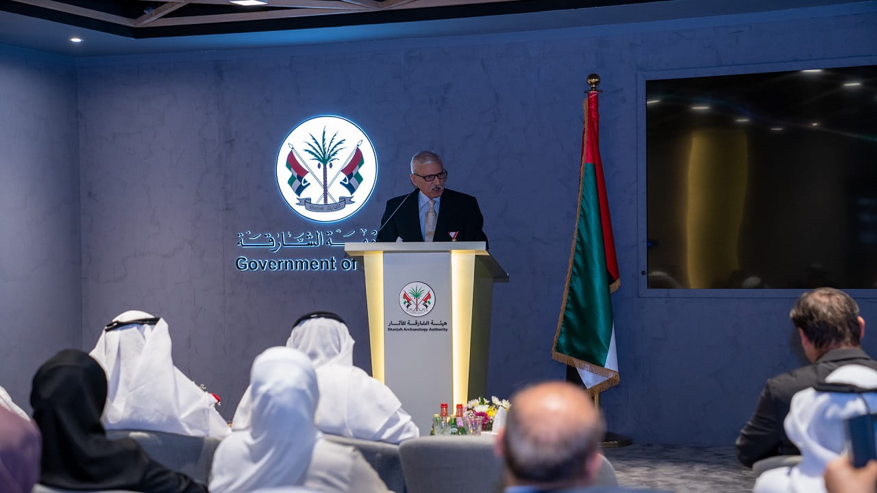 منح سعادة الدكتور أندرياس ليبماه هولتمسان سفير جمهورية النمسا لدى الدولة هيئة الشارقة للآثار وسام الميدالية الذهبية والمقدم من وزارة التعليم والعلوم والبحوث الاتحادية في النمسا، ممثلة في الدكتور صباح عبود جاسم مدير عام هيئة الشارقة للآثار وعيسى يوسف مدير إدارة الآثار بالهيئة، وذلك تقديراً لجهودهما المبذولة في التعاون المشترك بين الهيئة وجمهورية النمسا في مجال التنقيب الأثري.