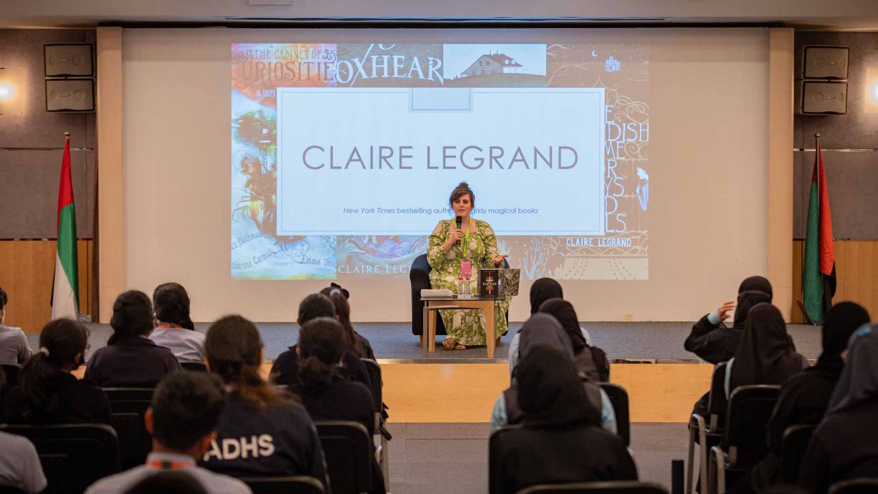 شاركت الكاتبة الأميركيّة كلير ليغراند تجربتها في عالم النشر والتأليف مع طلبة المدارس في جلسة تفاعليّة، قدمت فيها خلاصة رحلتها الناجحة التي تكمن في 4 محاور رئيسيّة نصحت كل من يطمح للدخول إلى عالم الكتابة أن يلتزم بها ويعمل على تنميتها، وهي: صوتك وتجربتك ذو قيمة عالية، الحلم والطموح اليومي في غاية الأهميّة، لا تستسلم أبداً، وابحث عن الشيء الذي تشعر أنّه صحيح.
