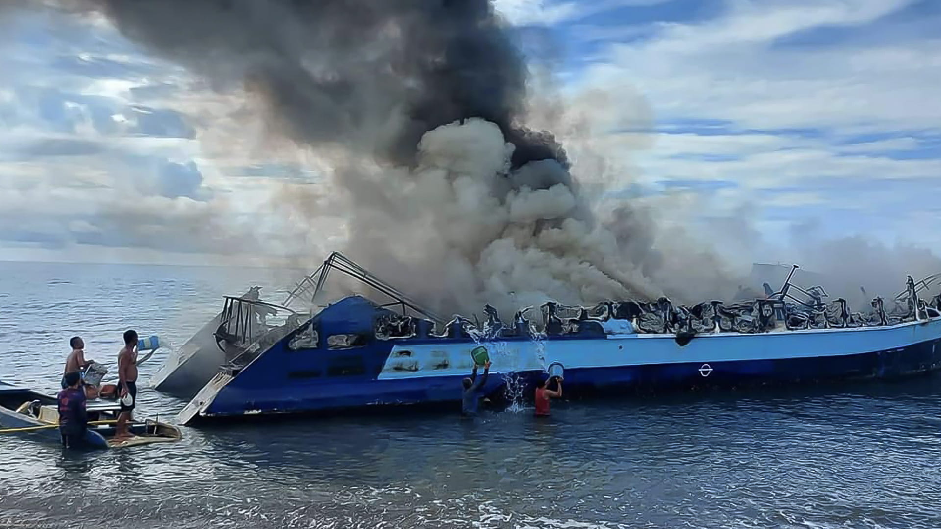 وأظهرت صور نشرها خفر السواحل أشخاصا يرتدون سترات نجاة يسبحون في البحر في انتظار إنقاذهم بينما تم نقل بعضهم إلى بر الأمان بواسطة سفينة شحن في المنطقة. اجتاح الحريق والدخان الكثيف العبارة المؤلفة من طابقين.