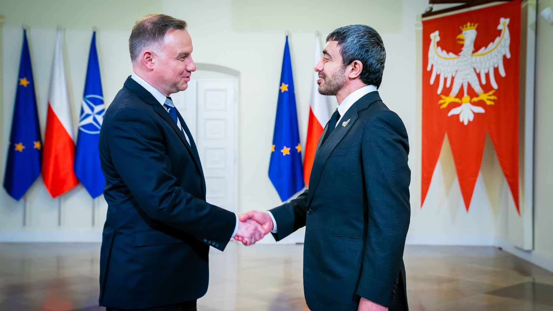 وجرى خلال اللقاء الذي عقد في إطار زيارة سموه الرسمية إلى جمهورية بولندا، بحث سبل تعزيز العلاقات الثنائية الإماراتية البولندية، ودفع آفاق التعاون المشترك بين البلدين في المجالات كافة بما يحقق مصالحهما المتبادلة ويعود بالخير على شعبيهما.