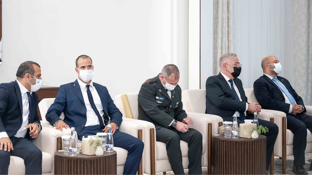 حضر اللقاء، الفريق سمو الشيخ سيف بن زايد آل نهيان نائب رئيس مجلس الوزراء وزير الداخلية، وسمو الشيخ طحنون بن زايد آل نهيان مستشار الأمن الوطني، وسمو الشيخ منصور بن زايد آل نهيان نائب رئيس مجلس الوزراء وزير شؤون الرئاسة، وسمو الشيخ خالد بن محمد بن زايد آل نهيان رئيس مكتب أبوظبي التنفيذي عضو المجلس التنفيذي، ومعالي الدكتور أنور بن محمد قرقاش المستشار الدبلوماسي لصاحب السمو رئيس الدولة، وعدد من المسؤولين والوفد المرافق لرئيس وزراء إسرائيل.
