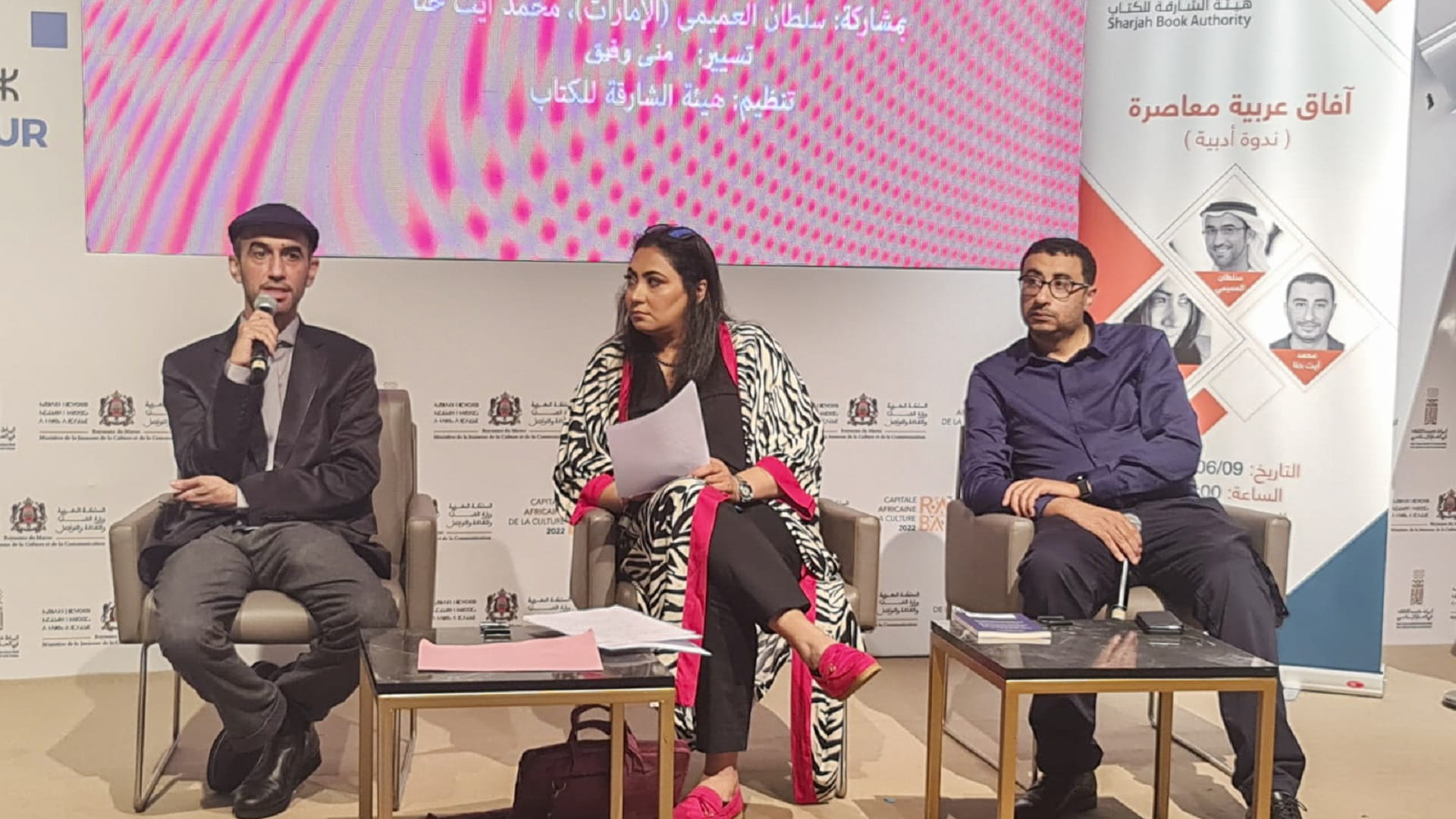 ونظّمت الهيئة في المعرض، ندوة أدبية بعنوان "آفاق عربية معاصرة"، استضافت سلطان العميمي رئيس اتحاد أدباء وكتاب الإمارات، والكاتب والمترجم محمد آيت حنا من المغرب، والتي سلطت الضوء على عدد من قضايا النقد والفكر المعاصرة التي ترتبط بالآداب العربية.