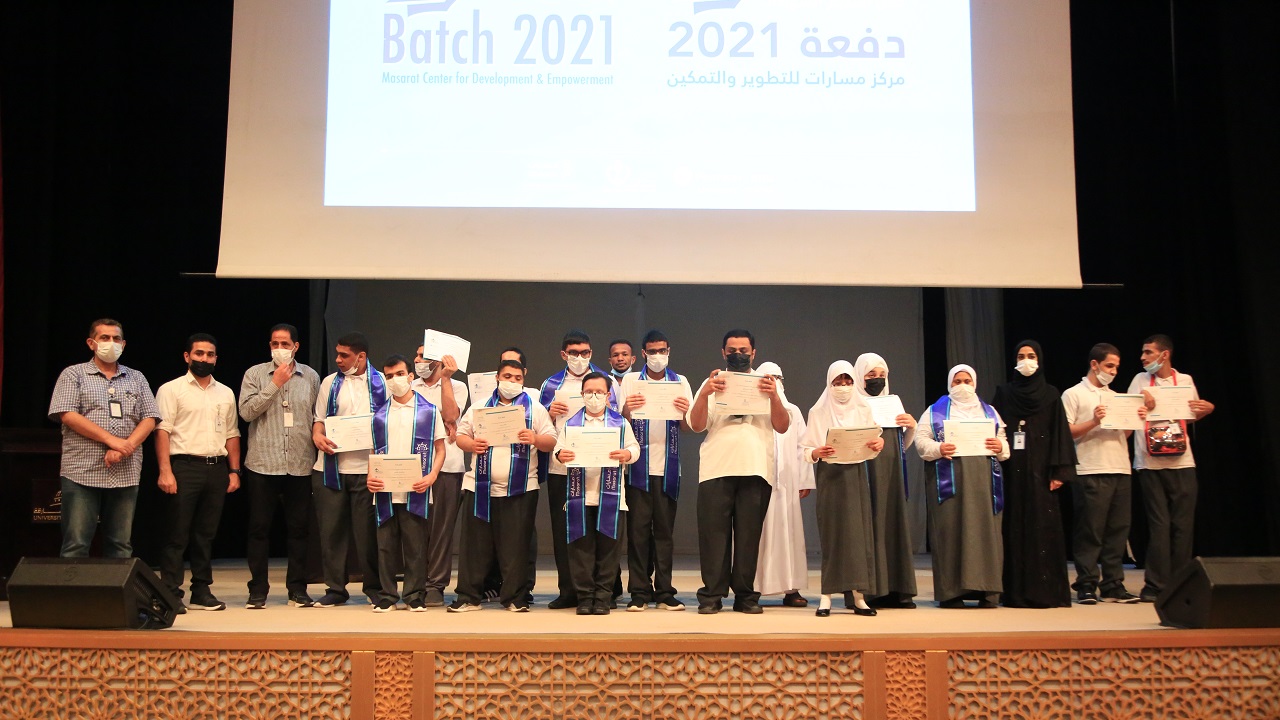شهد افتتاح الحفل، تلاوة لآيات من الذكر الحكيم، تلاها الطالب محمد النقبي، ثم ألقى الطالب يزن باسل كلمة الطلاب توجّه من خلالها بأسمى آيات الشكر والتقدير إلى الشيخة جميلة بنت محمد القاسمي، التي لا تدخر جهداً في تقديم أفضل الخدمات لذوي الإعاقة في جميع المجالات، إثر ذلك تم عرض فيلم قصير عن مركز مسارات للتطوير والتمكين، ثم تسلّم طلاب المركز الـ152 شهادات برنامج التعليم المستمر.