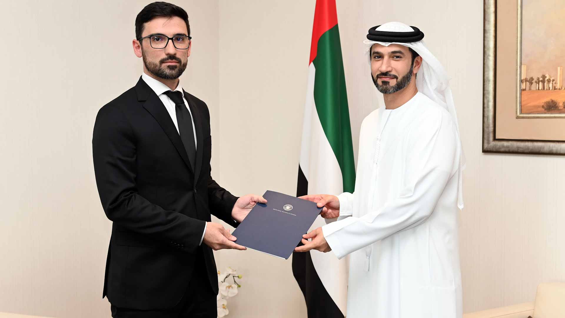 تسلّم سعادة عبد الله محمد البلوكي، وكيل الوزارة المساعد لشؤون المراسم بالإنابة في ديوان عام وزارة الخارجية والتعاون الدولي، نسخة من أوراق اعتماد بوغدان أوكتافيان باديكا، سفير رومانيا لدى الدولة.