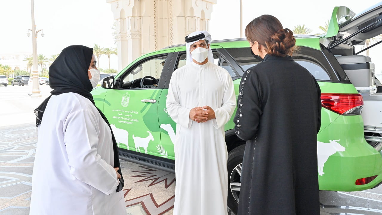 أطلق سمو الشيخ منصور بن زايد آل نهيان نائب رئيس مجلس الوزراء وزير شؤون الرئاسة، بحضور معالي محمد بن عبدالله القرقاوي وزير شؤون مجلس الوزراء و معالي مريم بنت محمد سعيد حارب المهيري وزيرة التغير المناخي والبيئة، مبادرة مراكز الإرشاد الزراعي والبيطري المتنقلة والتي تنفذها وزارة التغير المناخي والبيئة.