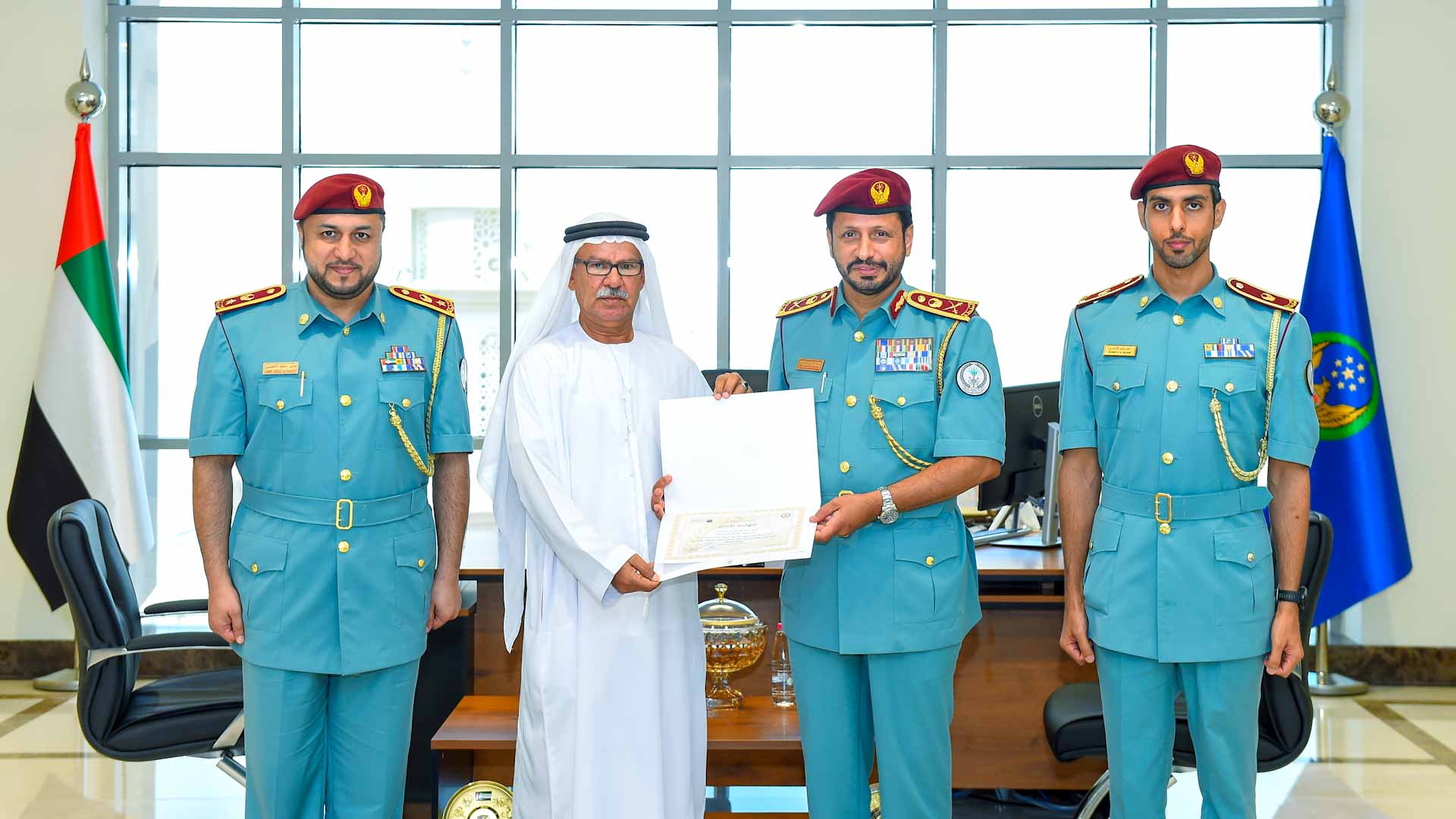 ومن جانب آخر، كرم قائد عام شرطة الشارقة الملازم متقاعد عبد الله حامد إبراهيم، تقديراً له بما بذله من جهود طيبة في خدمة الوطن والمجتمع خلال مسيرته المهنية في السلك الشرطي، مؤكداً أن خدمة الوطن لا تنتهي بالتقاعد، بل هو بداية لمرحلة جديدة نحو عطاء قد يكون أفضل وأكثر فاعلية في خدمة الوطن والمجتمع.