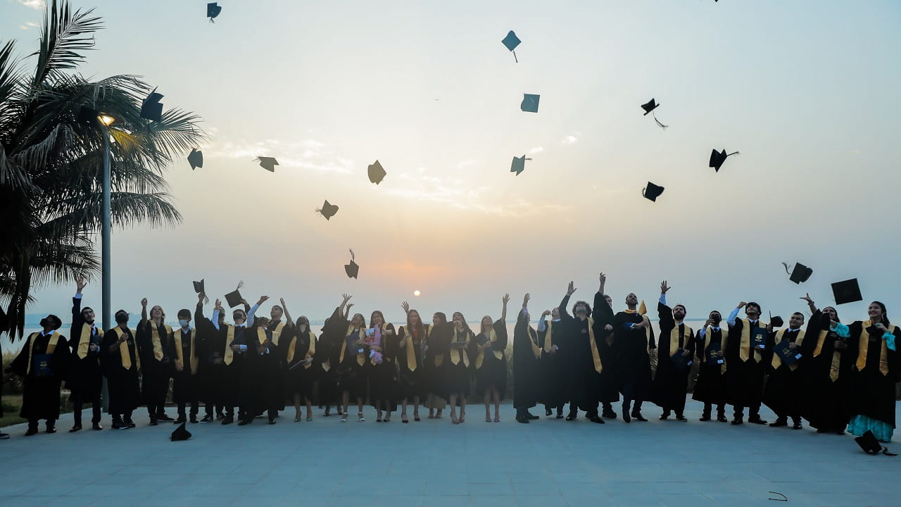 وتابع سموه قائلاً: أفكاركم، وآراؤكم، وشغفكم بالحصول على العلم هو ما سيدفعكم للمضي قدماً نحو تحقيق النجاحات والإنجازات، لكن من المهم جداً أن تحافظوا على القيم والمبادئ الإنسانية والأخلاقية التي تشبعتم بها خلال رحلتكم.