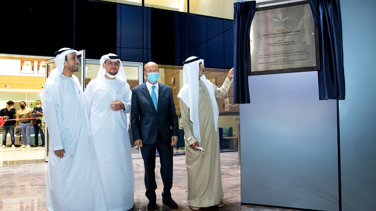افتتح معالي الشيخ نهيان بن مبارك آل نهيان وزير التسامح والتعايش، المبنى الجديد لمدارس إنترناشيونال كوميونتي– فرع مركز المدينة في أبوظبي، بحضور معالي محمد علي محمد الشرفاء الحمادي رئيس دائرة التنمية الاقتصادية في أبوظبي، وماديار مينيليكوف سفير جمهورية كازاخستان لدى الدولة، والدكتور قاسم العوم رئيس مجلس الأمناء للمدارس .