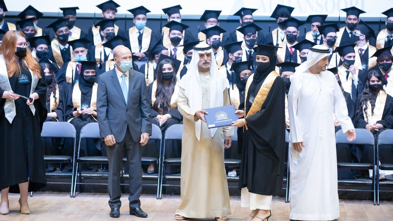 في سياق متصل، شهد معالي الشيخ نهيان بن مبارك آل نهيان، حفل تخريج الدفعة التاسعة عشرة "الخمسين" لـ95 من الخريجين والخريجات من مرحلة الثانوية العامة - المنهاج أميركي في مدارس إنترناشيونال كوميونتي – فرع المشرف، والذي أقيم على مسرح المدارس فرع مركز المدينة بحضور رئيس وأعضاء مجلس الأمناء وأعضاء ومجلس الإدارة وإدارة المدرسة وأهالي وذوي الطلاب.