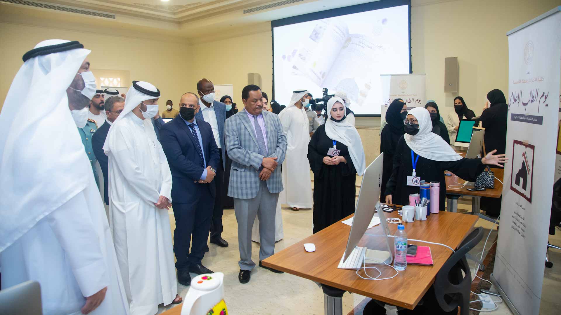 افتتح سعادة الأستاذ الدكتور عواد الخلف مدير الجامعة القاسمية فعاليات يوم الطالب الإعلامي، يرافقه الأستاذ الدكتور هشام عباس عميد كلية الاتصال، وذلك بحضور رئيس وأعضاء سعادة الدكتور خالد عمر المدفع رئيس مدينة الشارقة للإعلام، رئيس المجلس الاستشاري لكلية الاتصال، وسعادة الأستاذ محمد خلف مدير عام هيئة الشارقة للإذاعة والتلفزيون، عضو المجلس الاستشاري للكلية، وسعادة صالحة غابش مديرة المكتب الثقافي والإعلامي بالمجلس الأعلى لشؤون الأسرة عضو المجلس الاستشاري للكلية، والأستاذة خولة الحاج رئيسة جمعية أصدقاء مرضى السكري بالشارقة، ولفيف من الإعلاميين بالمؤسسات الحكومية ومنها القيادة العامة لشرطة الشارقة والمكتب الإعلامي لحكومة الشارقة، وتلفزيون عجمان، وصحيفة الخليج وأعضاء الهيئتين الأكاديمية والإدارية والطلبة.
