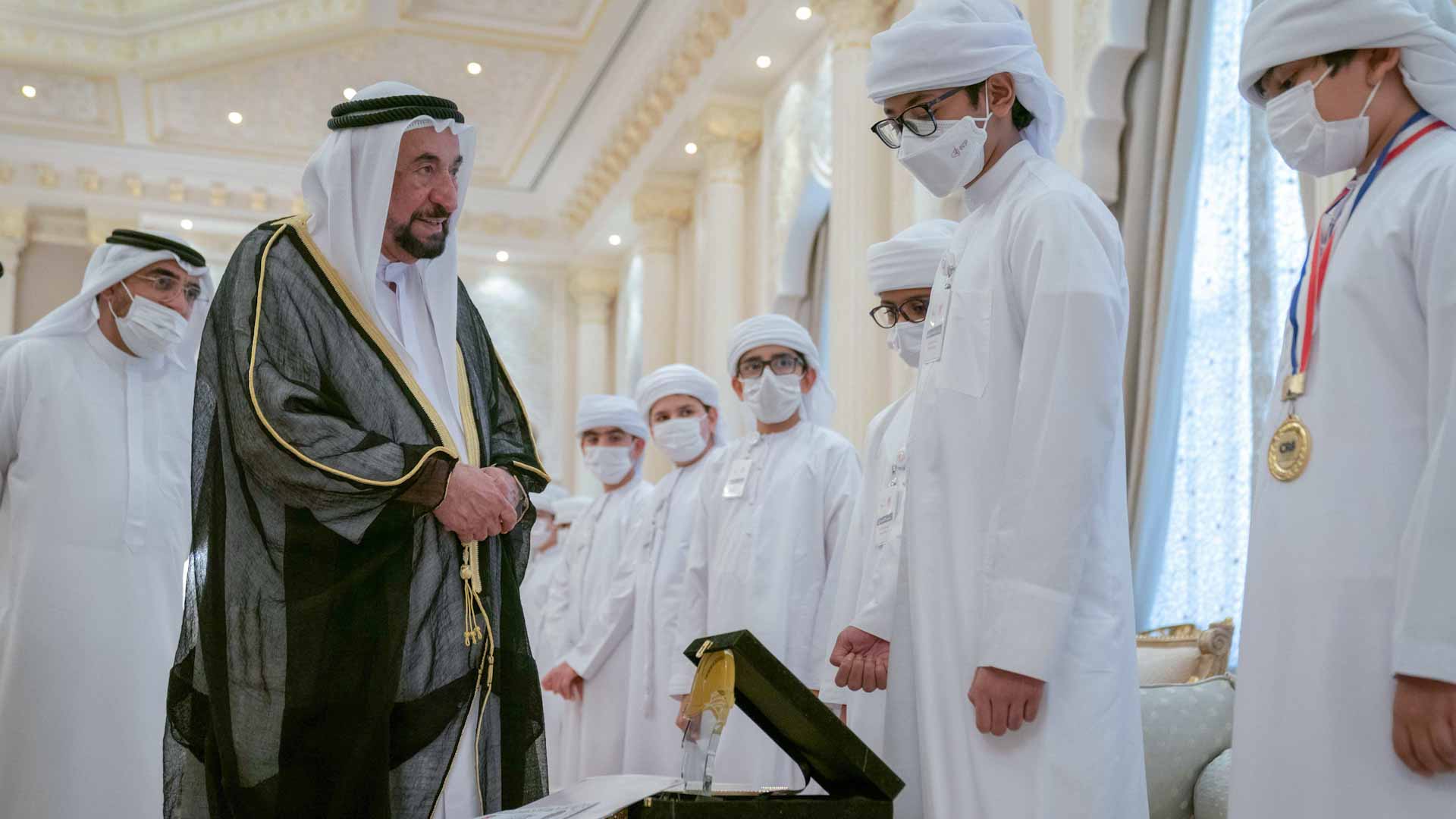 جاء ذلك خلال استقبال سموه وقرينته عصر أمس الثلاثاء في قصر البديع أصحاب الانجازات العلمية والتكنولوجية من منتسبي مؤسسات ربع قرن لصناعة القادة والمبتكرين البالغ عددهم 57 منتسب من أطفال الشارقة وناشئة الشارقة وسجايا فتيات الشارقة والذين حققوا انجازات عالمية من خلال الفوز بالمراكز الأولى والتأهل للتصفيات النهائية في العديد من المسابقات العالمية الخاصة بمجالات العلوم والتكنولوجيا.