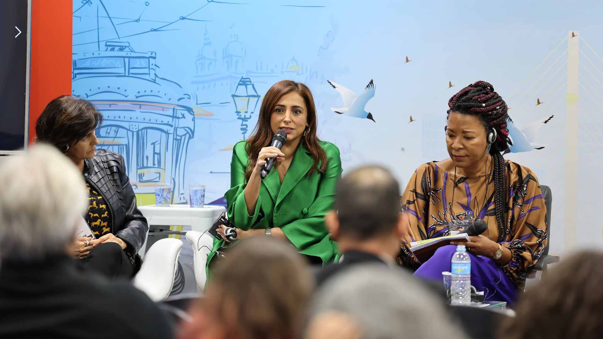 وشاركت رئيسة الاتحاد الدولي للناشرين في عدد من الجلسات الحوارية والنقاشية في "معرض ساو باولو الدولي للكتاب"، واستعرضت خلال جلسة بعنوان "مكتبات جديدة .. قرّاء جدد"، أقيمت بمشاركة متحدثين من كولومبيا والبرازيل لتبادل الأفكار والرؤى، تجربة دولة الإمارات العربية المتحدة في تنفيذ رؤية واستراتيجية جديدة لتطوير "بيت الحكمة" بالشارقة كبوابة حديثة للعلم والمعرفة والثقافة، كما تناولت الدور الحيوي الذي تلعبه المكتبات بشكل عام في تعزيز الروابط المجتمعية، وبشكل خاص في البلدان النامية وخلال الأزمات.