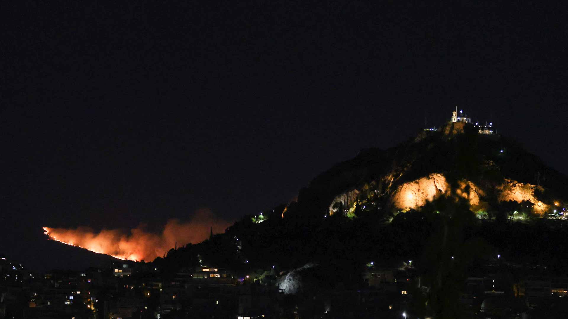 وغطت سحب كثيفة من الدخان السماء فوق جبل بينتيلي، حيث اندلع الحريق حوالي الساعة 14:30 بتوقيت غرينتش، الثلاثاء، على بعد نحو 27 كيلومتراً شمال وسط أثينا.