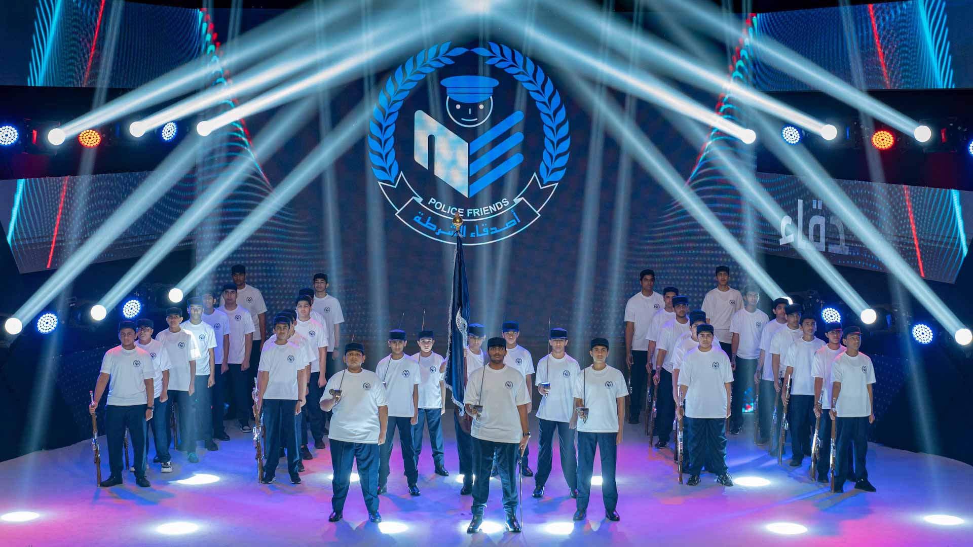 بدأ الحفل بالسلام الوطني، وتلاوة آيات من الذكر الحكيم، قدم بعدها أصدقاء الشرطة من الخريجين عرضاً عسكرياً اشتمل على أداء القسم لدولة الإمارات العربية المتحدة وحركات المشاة، وفك وتركيب السلاح وهي من ضمن المهارات التي عمل على تدريبهم عليها مشرفي الدورة، وغيرها من الفقرات التي جسدت قيم الولاء والوفاء وحب الوطن.