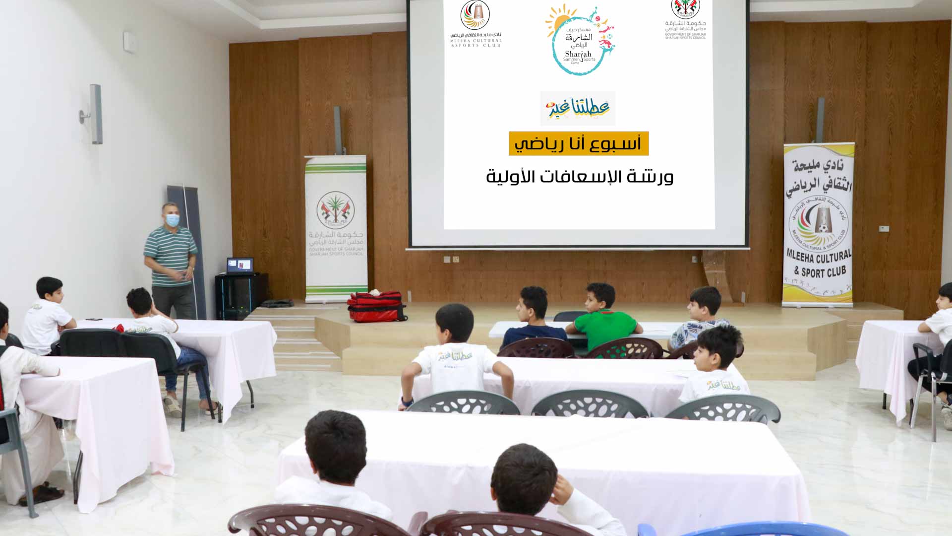 نظم نادي مليحة الثقافي الرياضي ضمن جهوده في تحقيق الصحة والسلامة الرياضية وبالتعاون مع وزارة الصحة ووقاية المجتمع ورشة عن الإسعافات الأولية هدفت إلى إكساب المشاركين في الملتقى الصيفي للنادي المهارات والأساليب الحديثة في السلامة العامة والقواعد الأساسية للإسعافات الأولية.